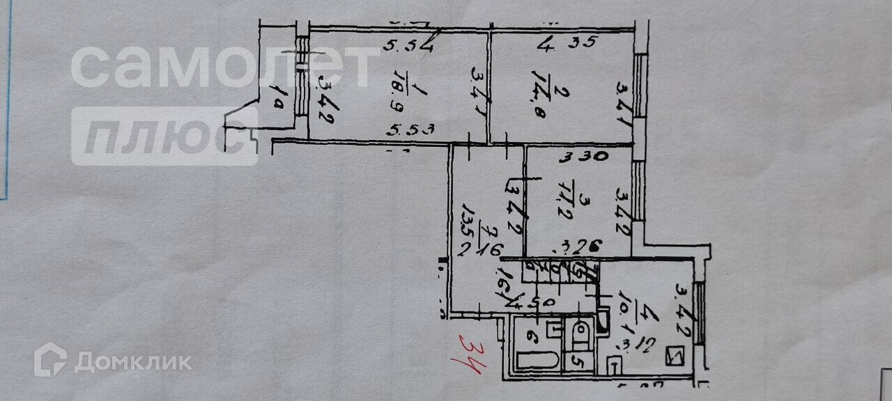 Жилая площадь 44.9 м2