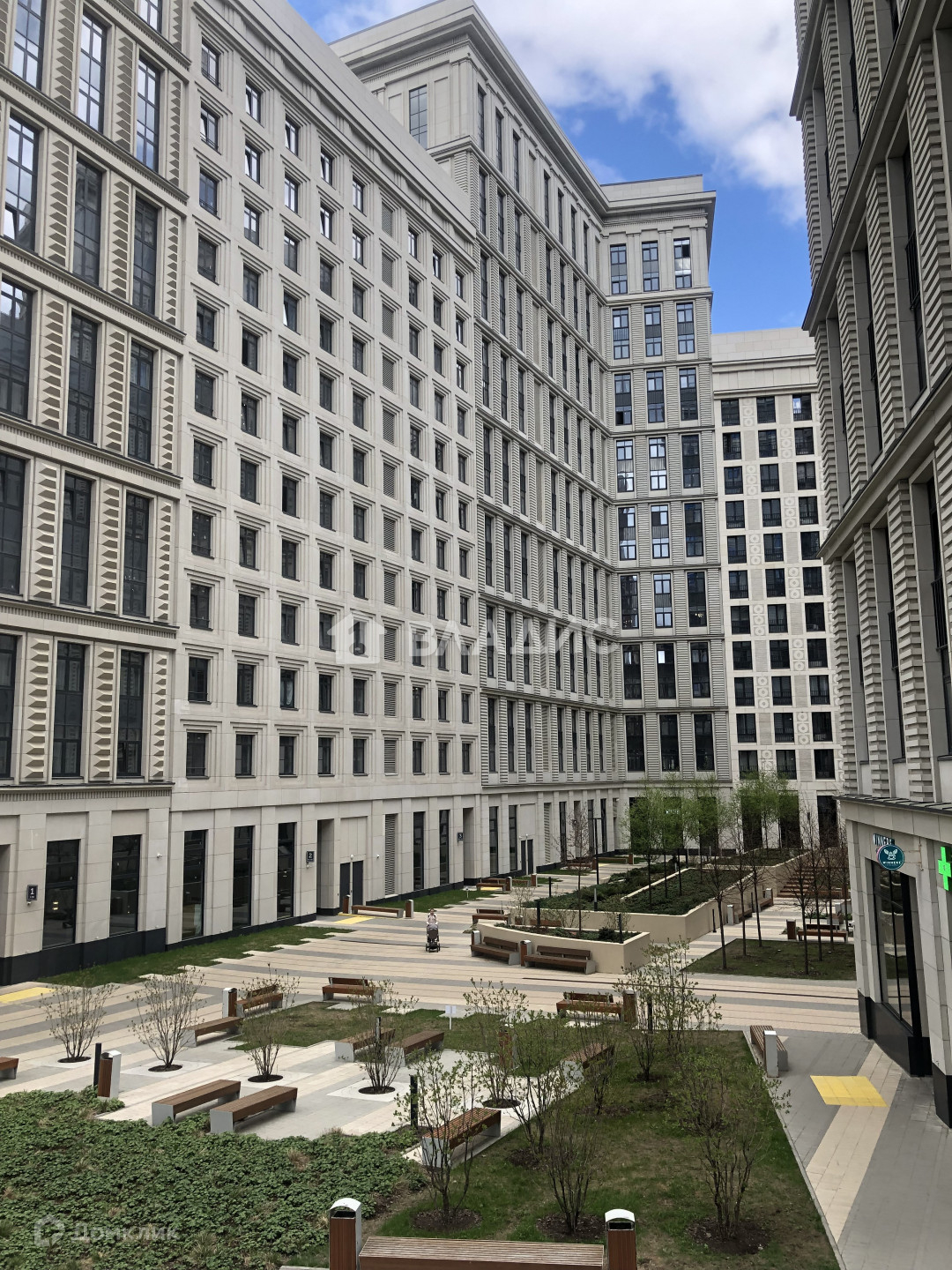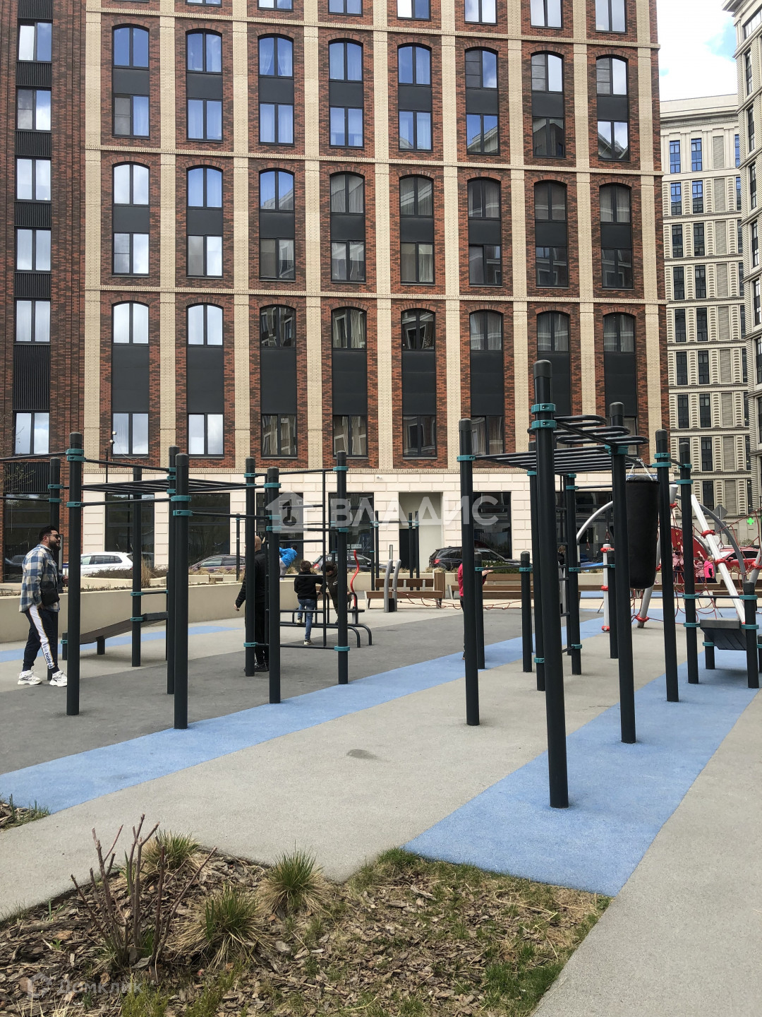 ландшафтный дизайн двора погружает в великолепие ХIХ века и комфорт ХХI века: мощеные дорожки, ухоженные газоны, удобные скамейки , прекрасный фонтан, изящные светильники, ультрасовременные безопасные площадки для игр и спорта детей и взрослых ;