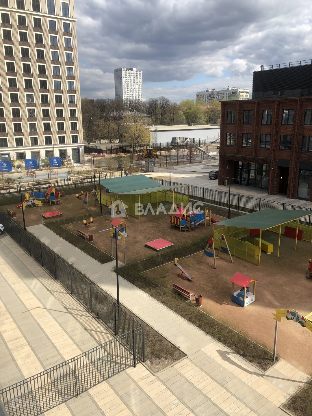 распашонка: из окон видна игровая площадка детского сада, вид на Москву, а также вид во двор.