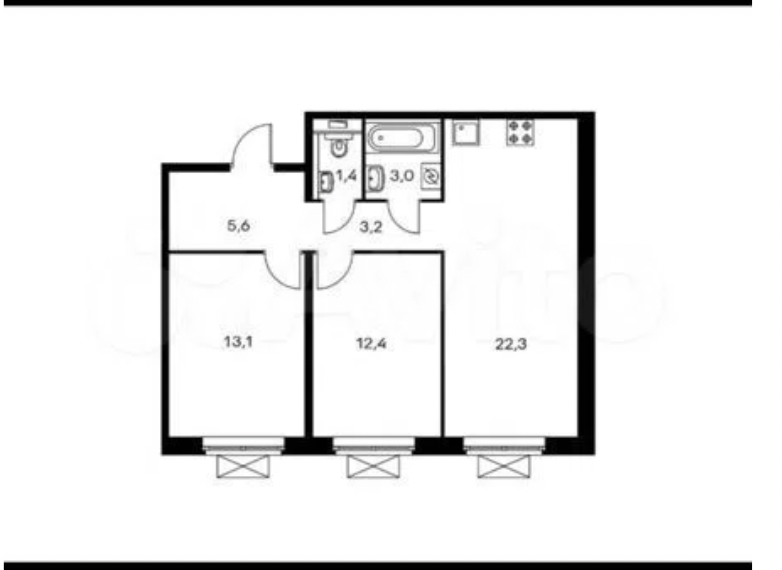 Общая площадь 60.5 м2