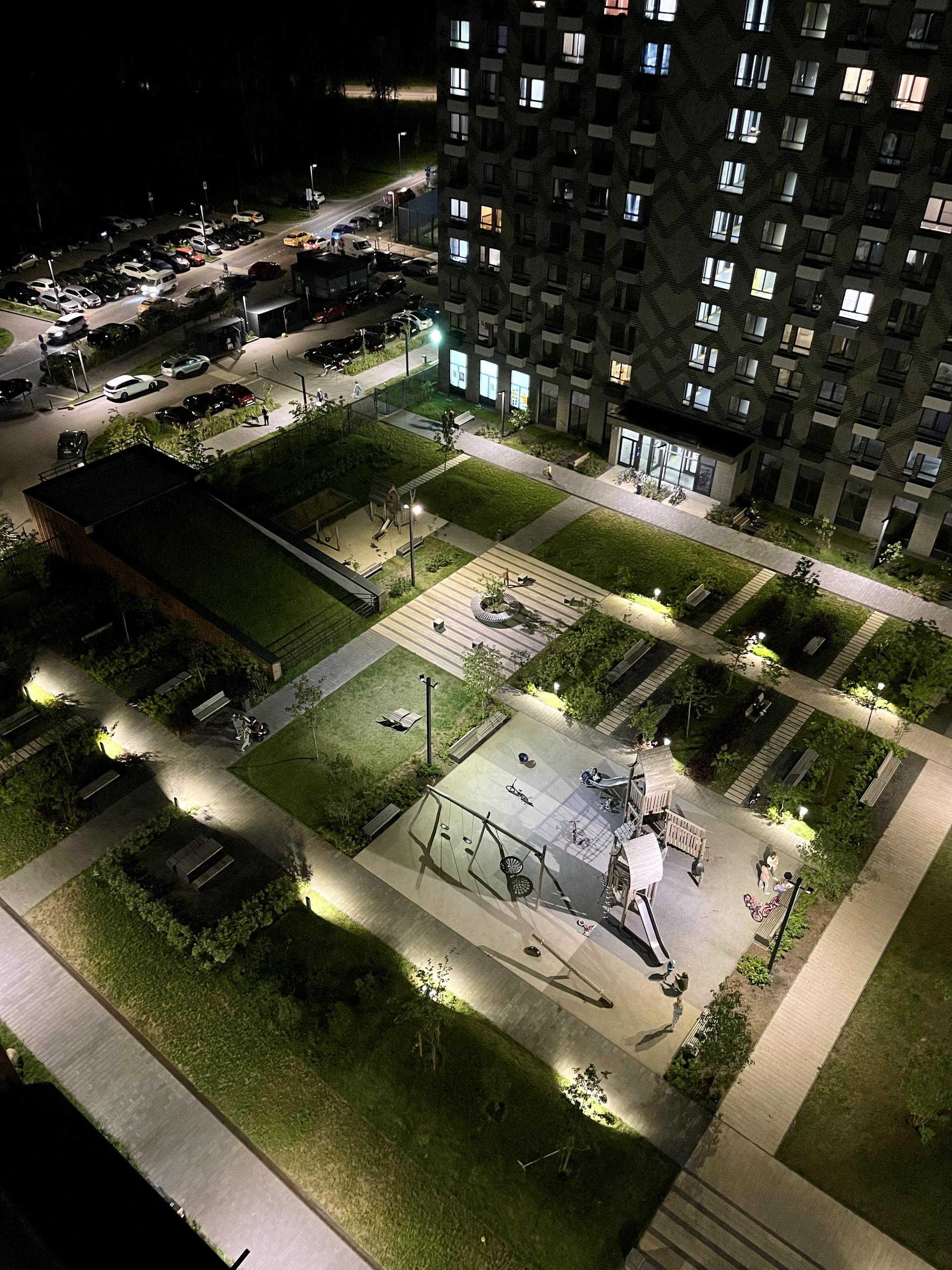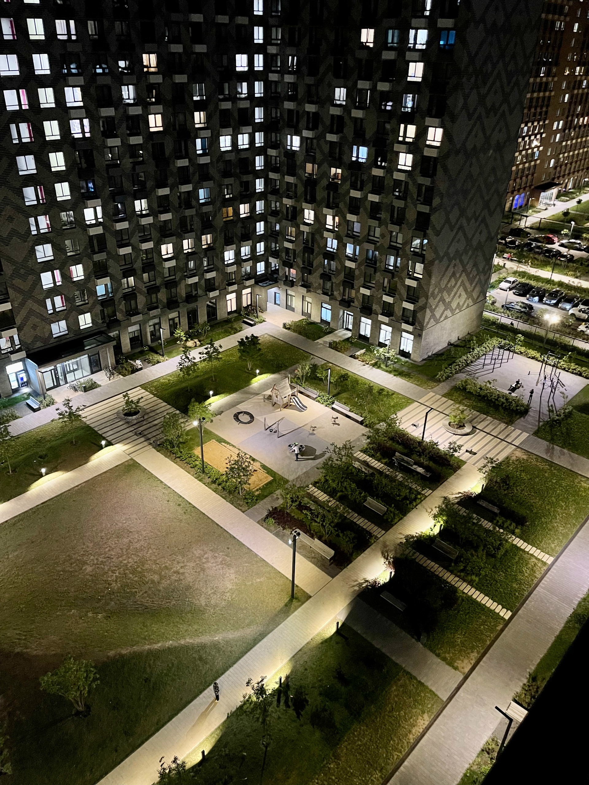 Установлены камеры видеонаблюдения для безопасности жителей ,видеодомофон с контролем камер с телефона, много площадок для детей и спорта, площадки для выгула собак - отдельная, огорожена забором зона.