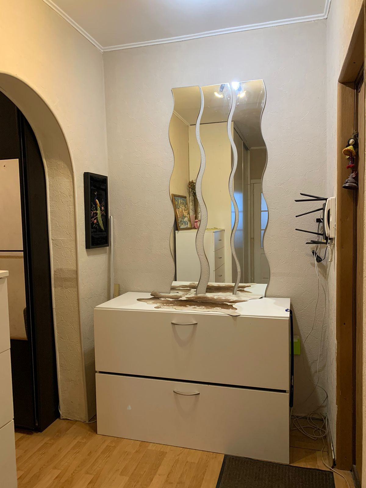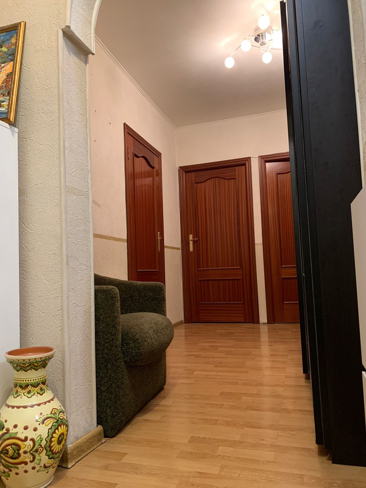 Продается просторная квартира, с тремя изолированными комнатами. Кухня удобной квадратной формы.