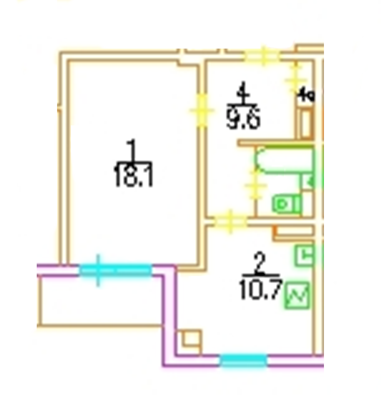 Параметры квартиры: 41,5 м2 Общая (без лоджии) / 18,1 м2 Жилая / 10,7 м2 Кухня.