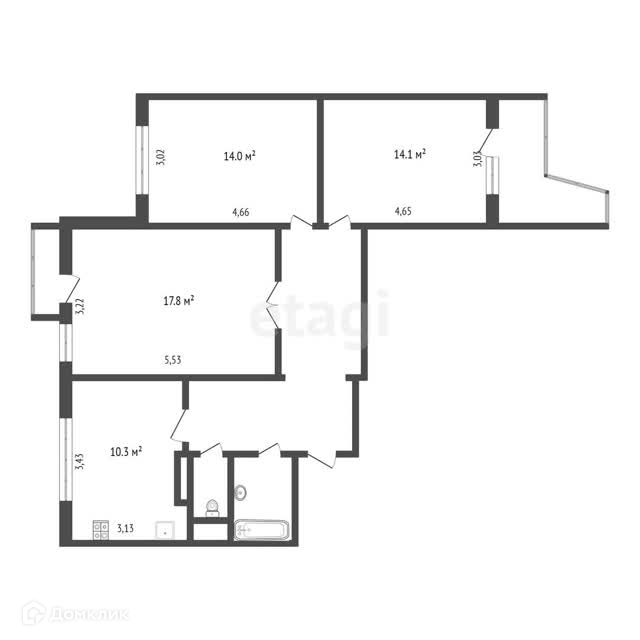 Общая площадь 74.7 м2