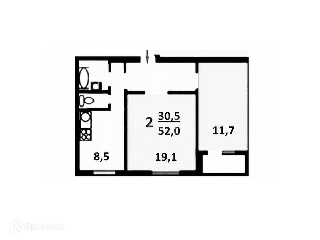 Общая площадь 52 м2