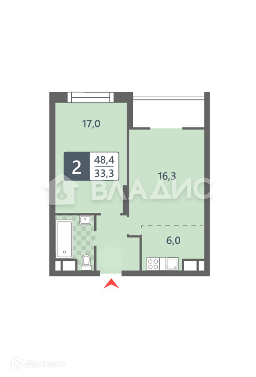 Общая площадь 48.4 м2