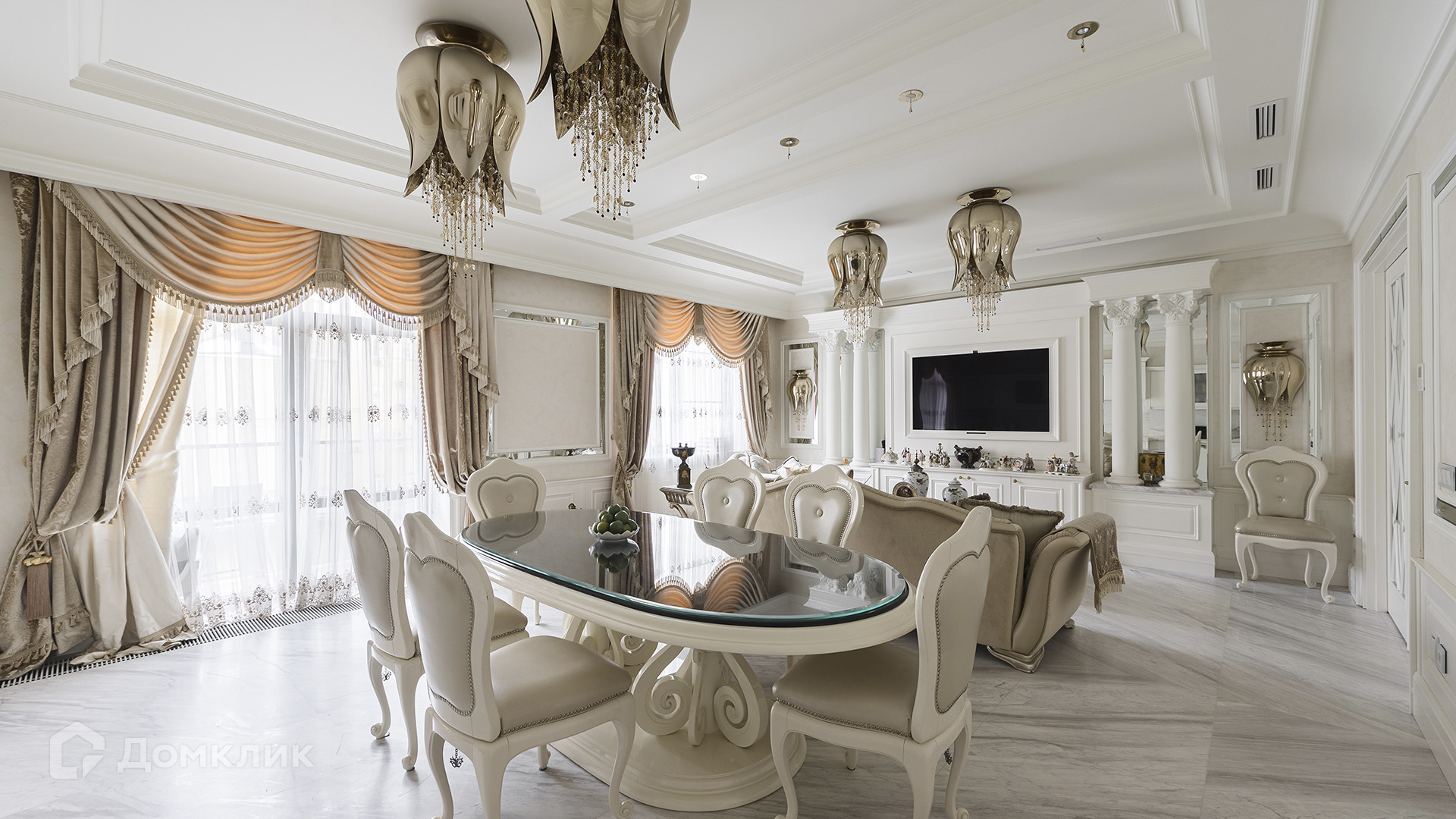 ID 227 456. Квартира с 3-мя спальнями и роскошным ремонтом в комплексе «Дом на Покровском бульваре» недалеко от Чистых прудов. Выполнена отделка в классическом стиле с использованием премиальных материалов — натуральный мрамор, дубовый паркет. Вся мебель оригинальная люксовых итальянских производителей, бытовая техника премиум-класса Gaggenau и Kuppersbusch.