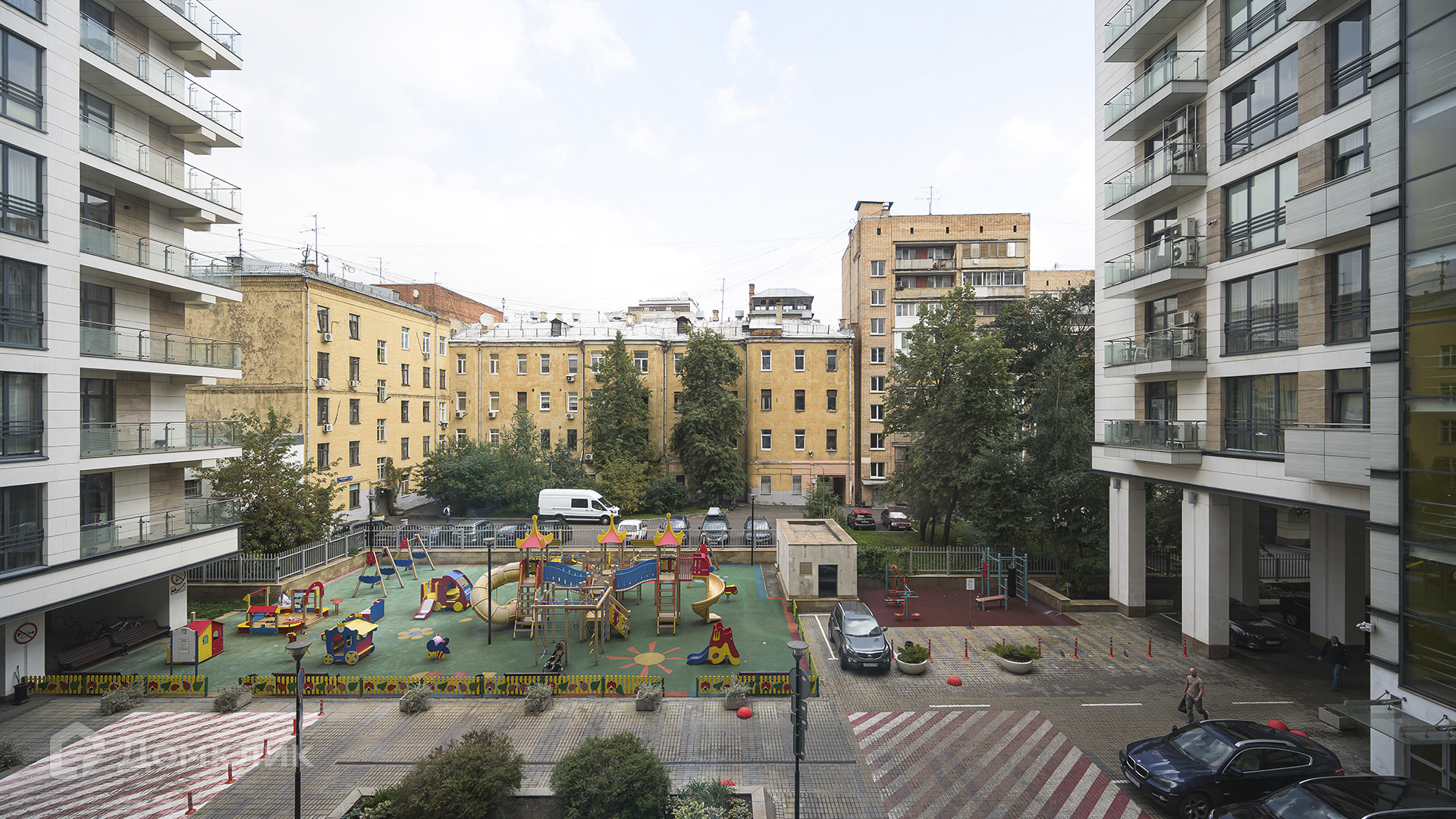 Секции соединены друг с другом стеклянными галереями и образуют три уютных внутренних двора. На приватной территории высажены редкие виды деревьев и оборудованы зоны отдыха и детский игровой городок. На последних этажах размещены пентхаусы с террасами и эксплуатируемой кровлей, с видами на башни «Москва-Сити», Храм Христа Спасителя, высотку у Красных ворот, аллеи Покровского бульвара.
