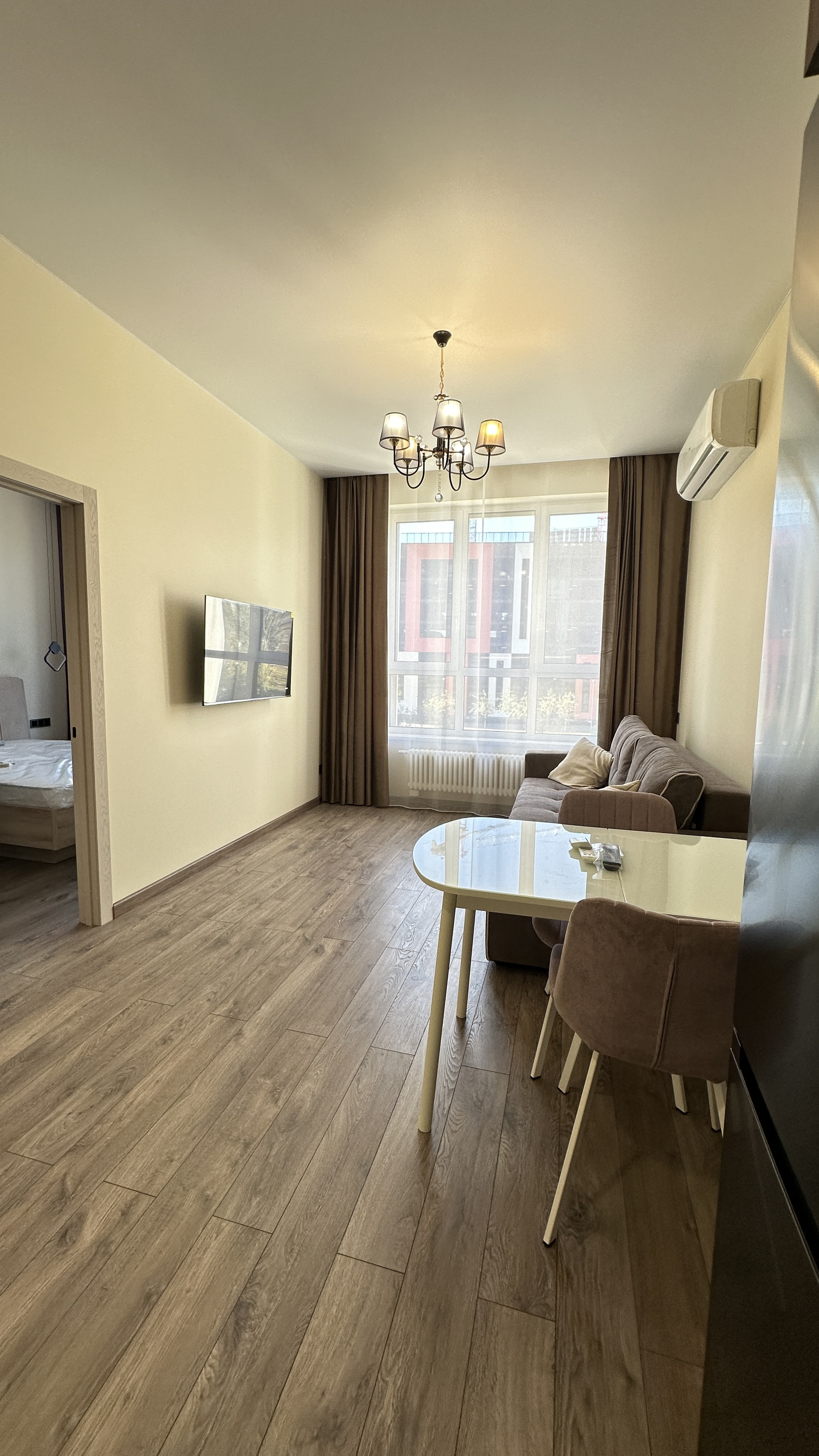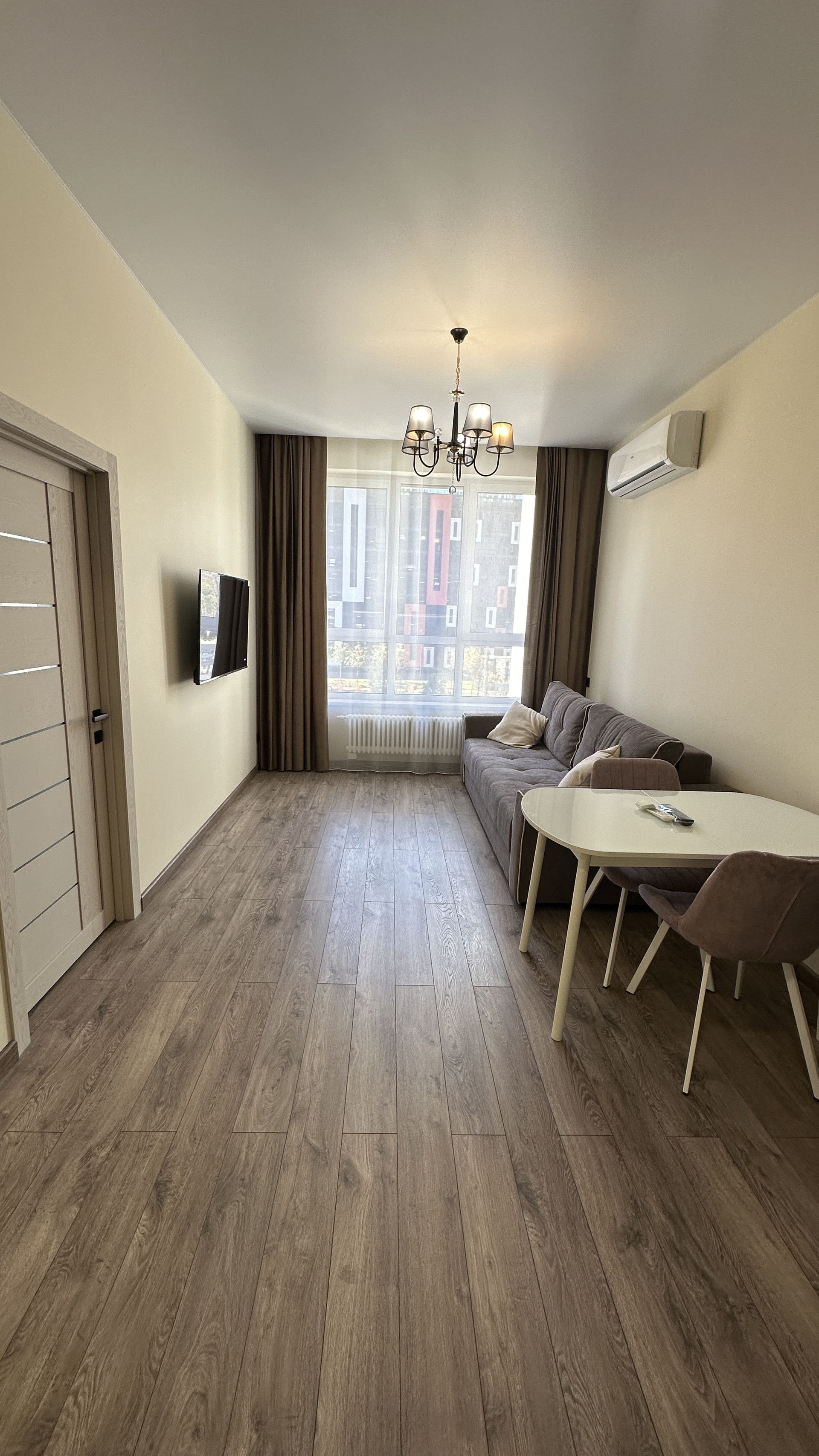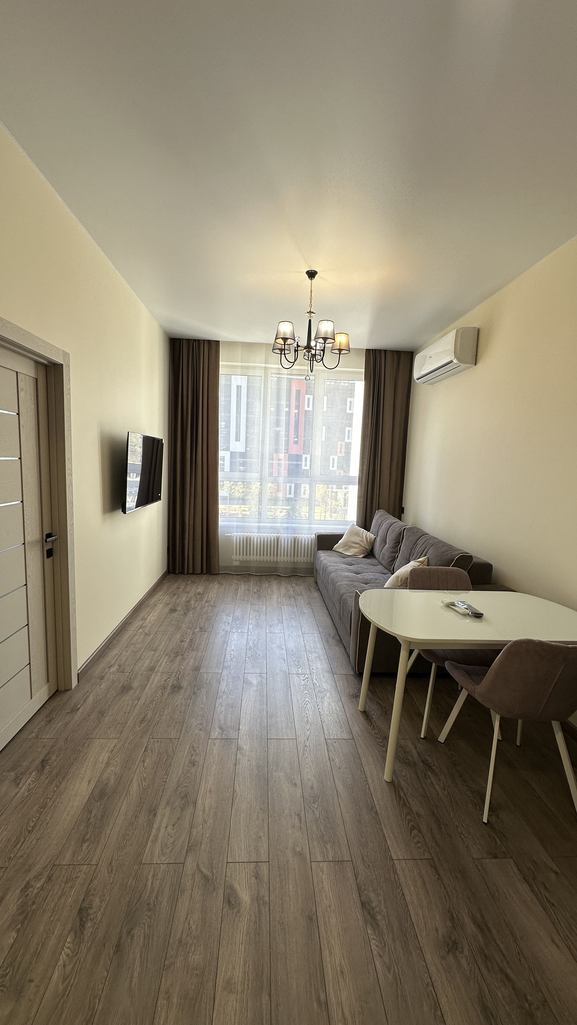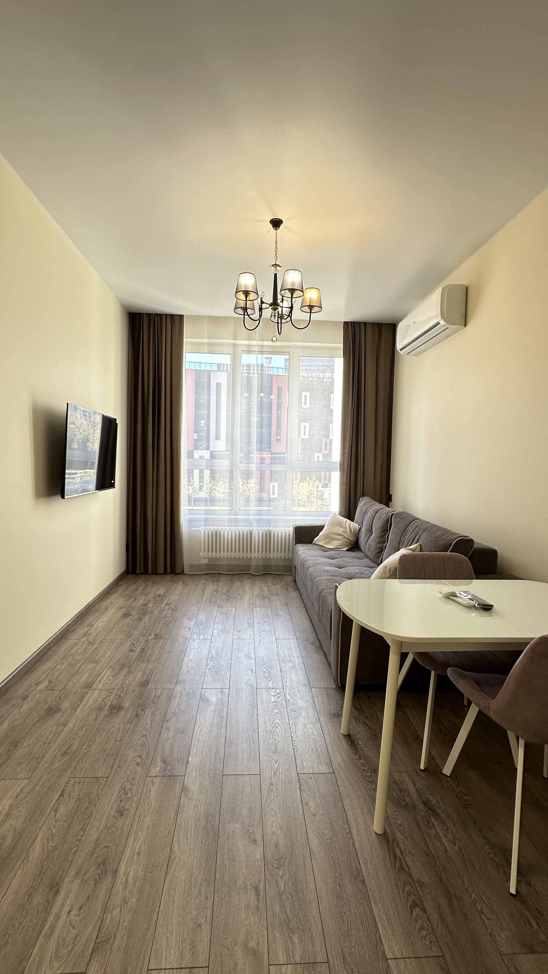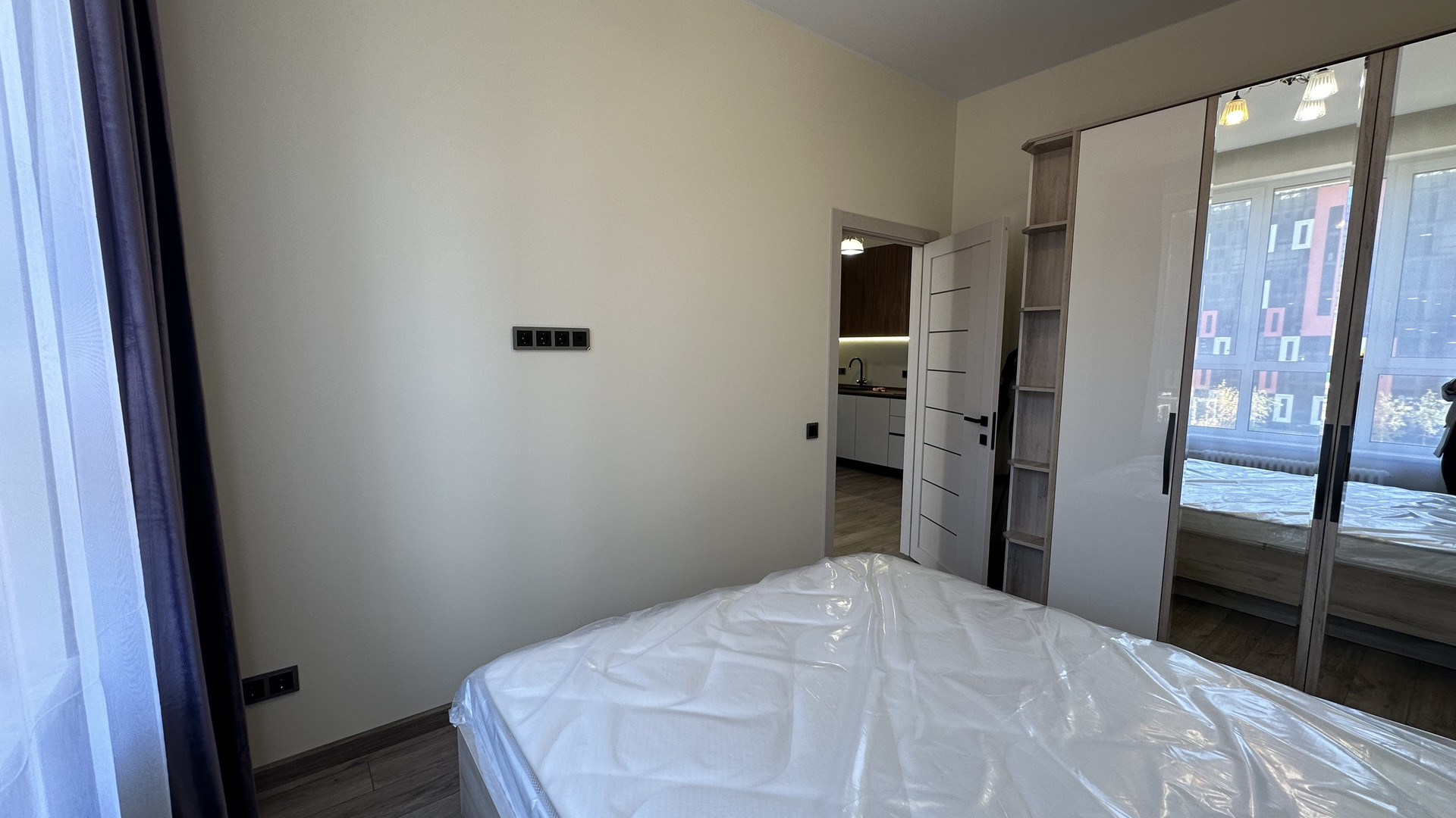 большая кухня гостиная (16 кв.м), изолированная спальня, просторный сан узел с душевой кабиной, высокие потолки 3,1 м, большие окна 2,5 м. Вид во двор, солнечная сторона.