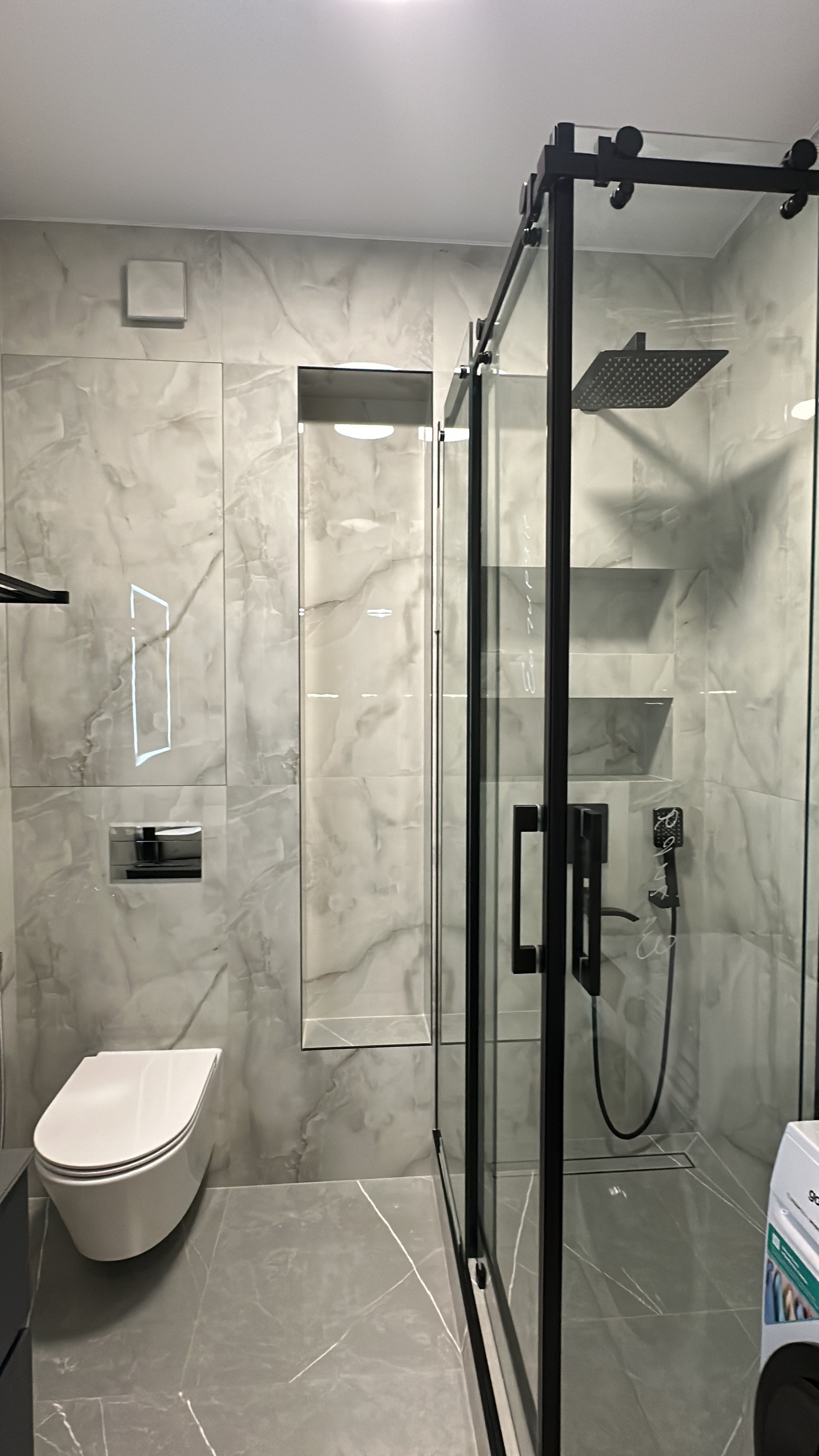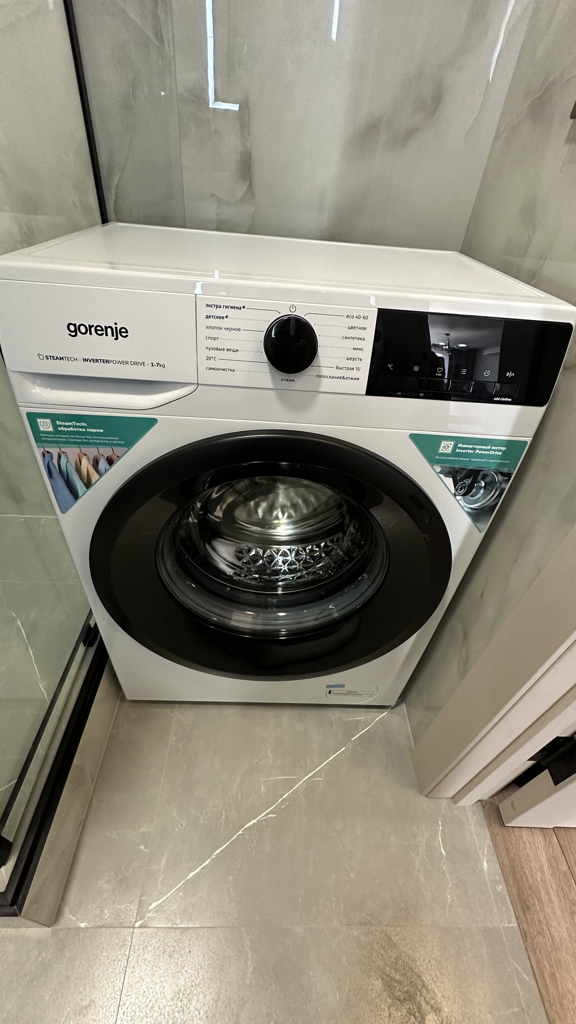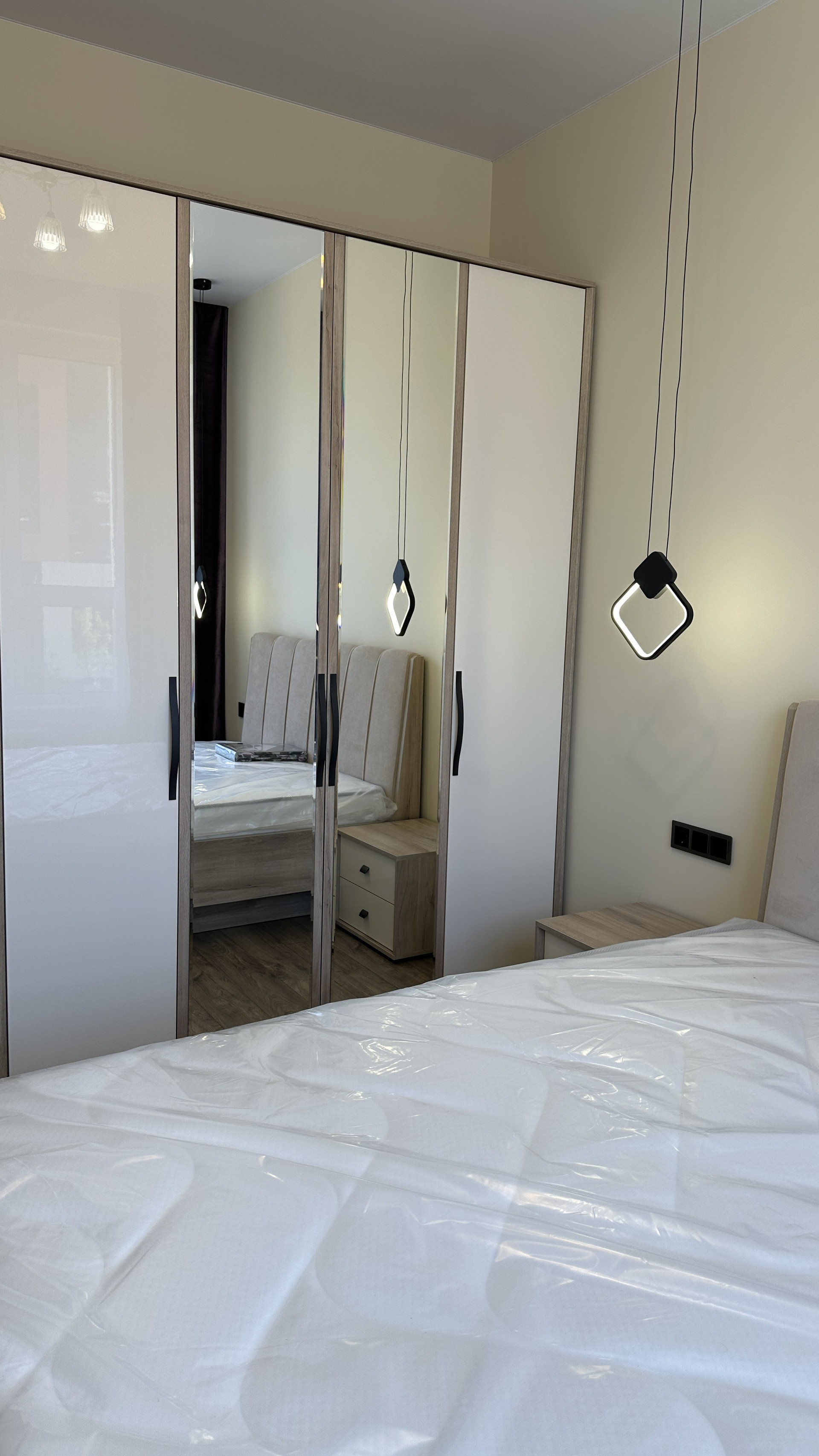 В спальне гарнитур с двуспальной кроватью, прикроватными тумбочками и большим шкафом. В сан узле новая стиральная машина.