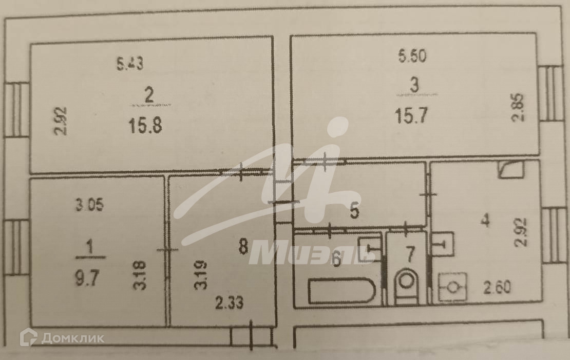 3-комнатная квартира, 64.3 м2, этаж 2 / 5, на продажу в Москве, Измайловский бульвар, 37