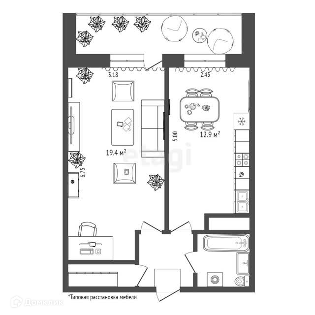 Общая площадь 40.4 м2