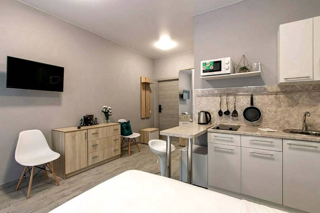 Студия 16.2 м .Свой совмещенный санузел, счетчики на воду и свет, лицевой счет на коммунальные услуги.Сама студия продаётся без отделки (можно дополнительно заказать отделку под ключ)