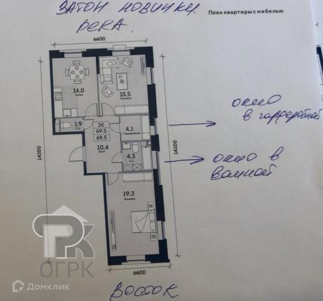 Общая площадь 69.5 м2