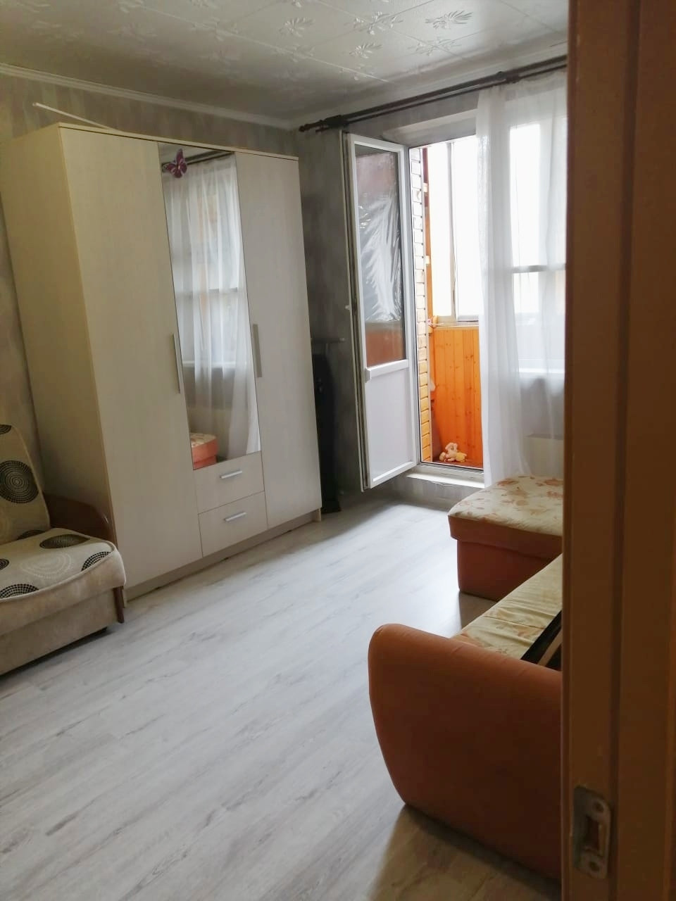 Общая площадь без учёта балкона 37.7 м², кухня 7.5м², комната 19м².