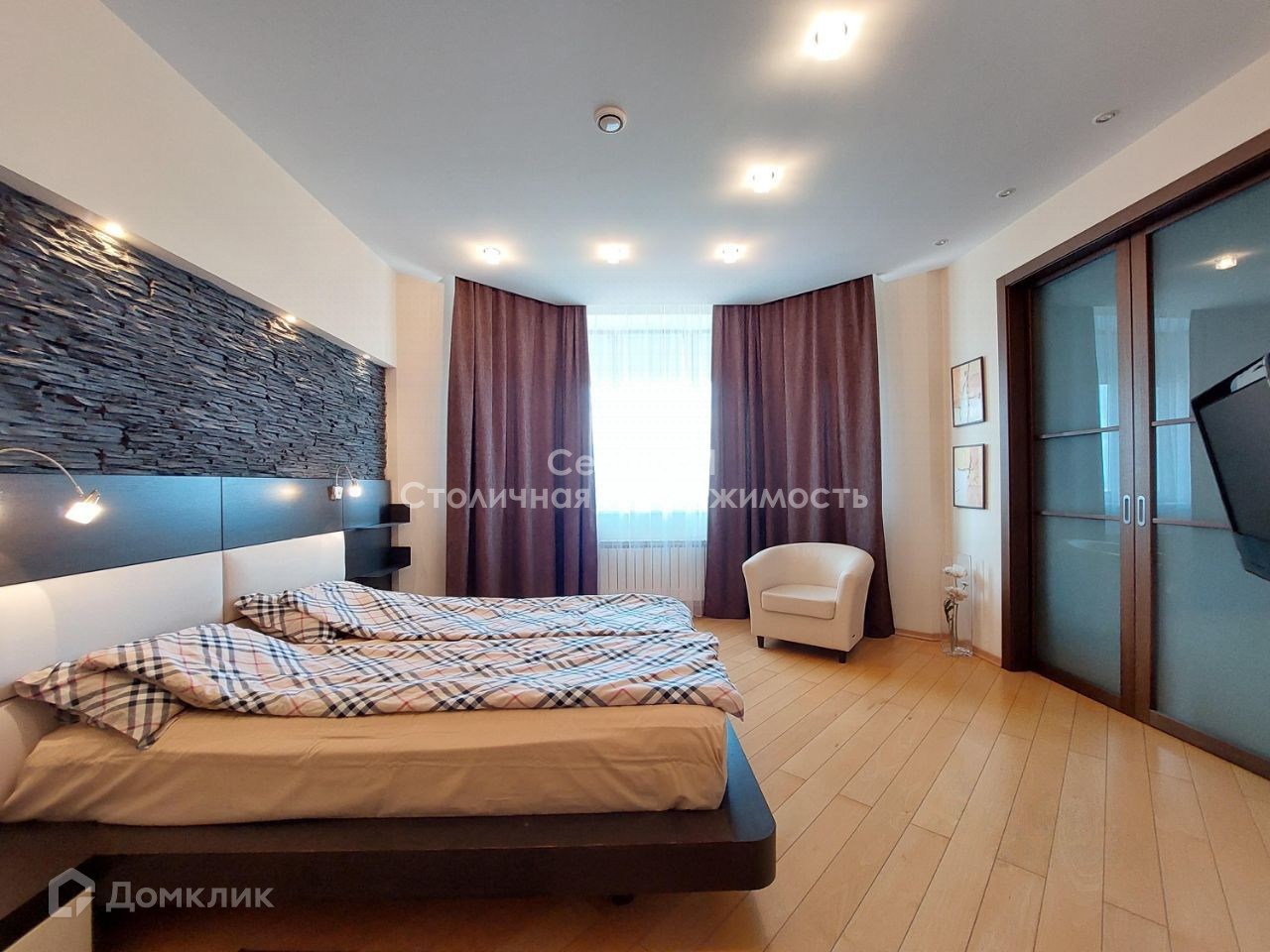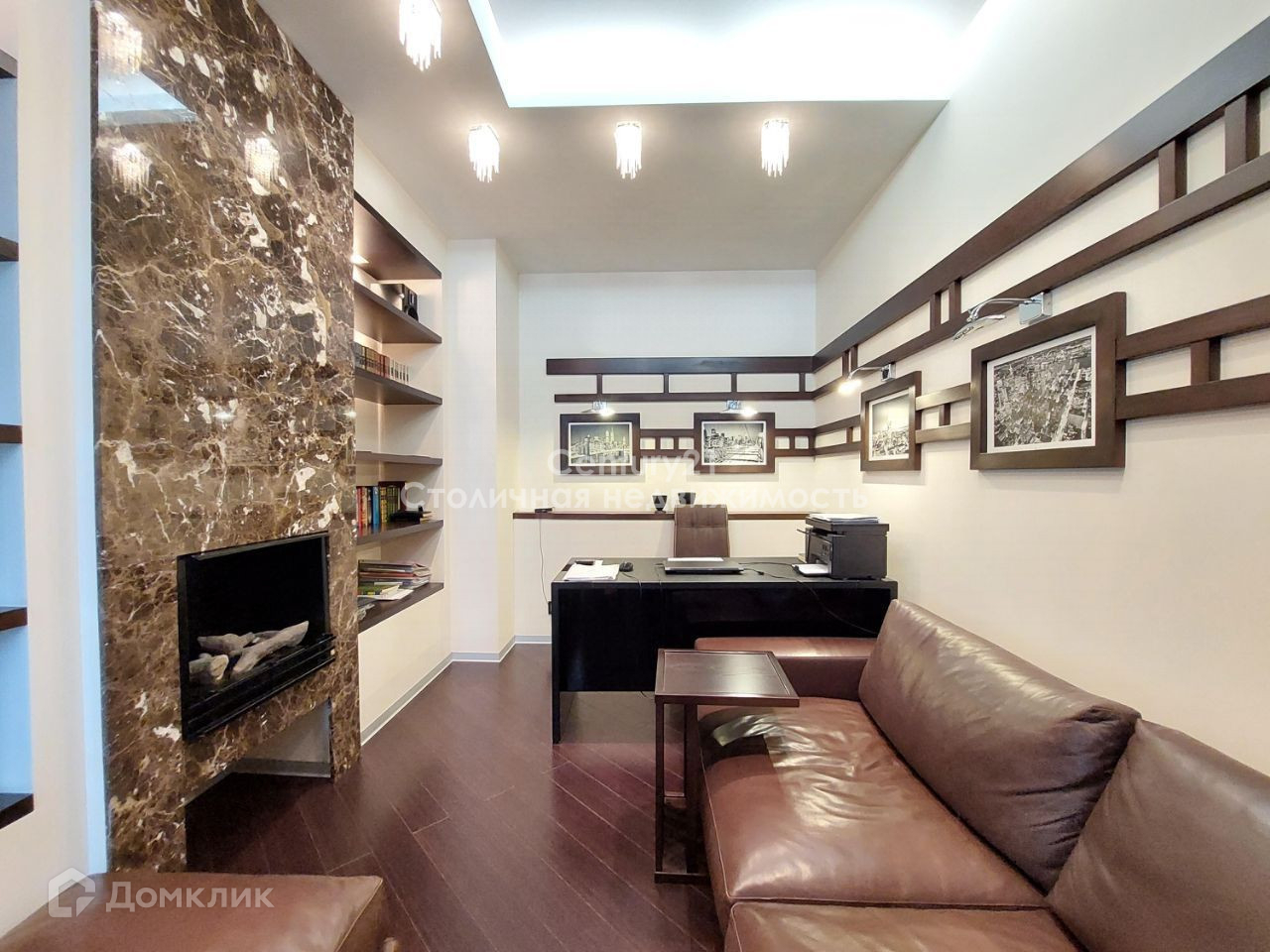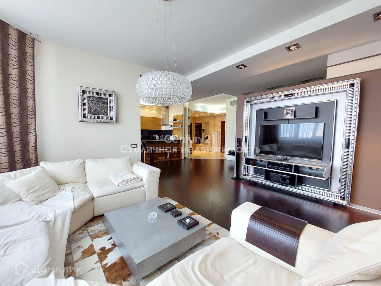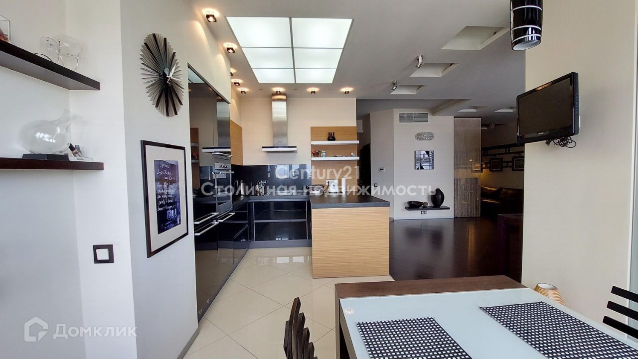 В квартире выполнен стильный дизайнерский ремонт. Удачная распашная планировка сочетает в себе: жилую зону, в которой расположены просторный холл, гардеробная комната и гостевой санузел; кухню, укомплектованную техникой Siemens (электроплита, духовой шкаф-микроволновая печь, холодильник, морозильник, кофе машина, холодильник для вина) и столовую, зону для отдыха и просмотра домашнего кинотеатра с эркером, зону кабинета с рабочим столом и камином. Две спальни (в главной спальне своя гардеробная) и основной санузел расположены отдельно. Высота потолков 3 м, сплит система кондиционирования. В квартире большое количество световых приборов для создания различной атмосферы уюта. Так же присутствует спец. вентиляционная система. Из главной спальни открывается чудесный вид на парк, а из гостиной и столовой - панорамный вид на центр Москвы. Квартира полностью укомплектована мебелью и продаётся со всей обстановкой. Есть номер стационарного телефона МГТС и оптико-волоконный кабель интернета.