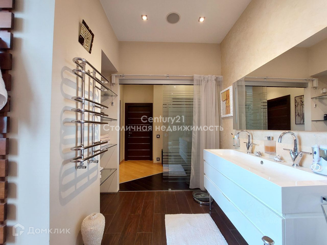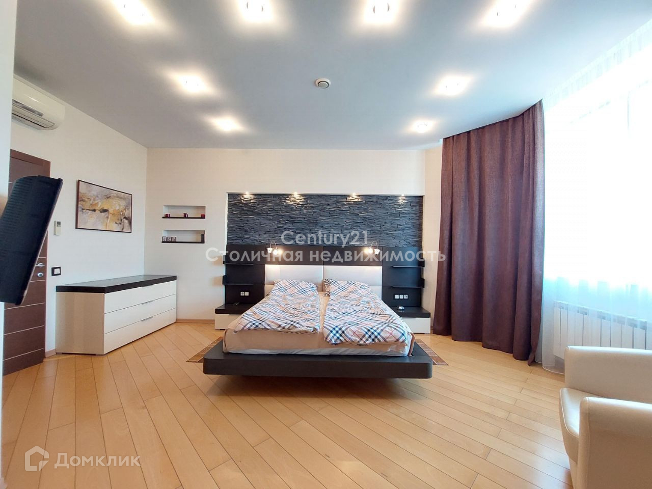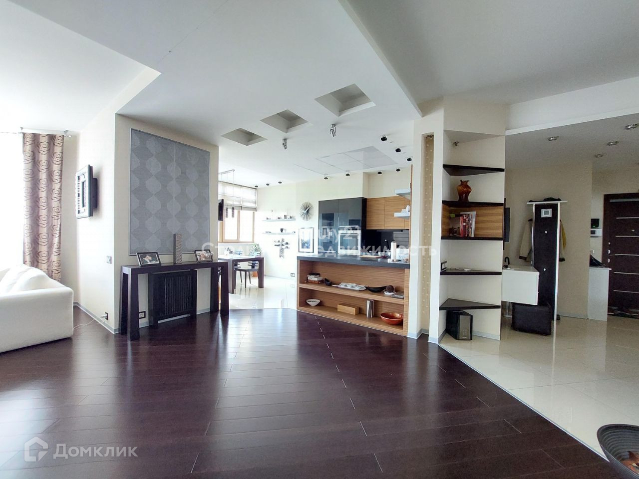 В квартире выполнен стильный дизайнерский ремонт. Удачная распашная планировка сочетает в себе: жилую зону, в которой расположены просторный холл, гардеробная комната и гостевой санузел; кухню, укомплектованную техникой Siemens (электроплита, духовой шкаф-микроволновая печь, холодильник, морозильник, кофе машина, холодильник для вина) и столовую, зону для отдыха и просмотра домашнего кинотеатра с эркером, зону кабинета с рабочим столом и камином. Две спальни (в главной спальне своя гардеробная) и основной санузел расположены отдельно. Высота потолков 3 м, сплит система кондиционирования. В квартире большое количество световых приборов для создания различной атмосферы уюта. Так же присутствует спец. вентиляционная система. Из главной спальни открывается чудесный вид на парк, а из гостиной и столовой - панорамный вид на центр Москвы. Квартира полностью укомплектована мебелью и продаётся со всей обстановкой. Есть номер стационарного телефона МГТС и оптико-волоконный кабель интернета.