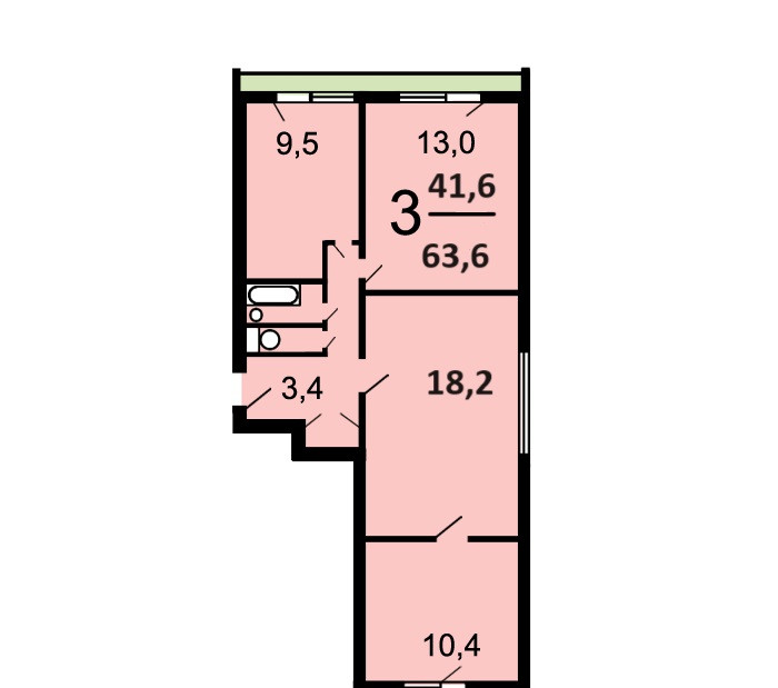 Общая площадь 63.6 м2