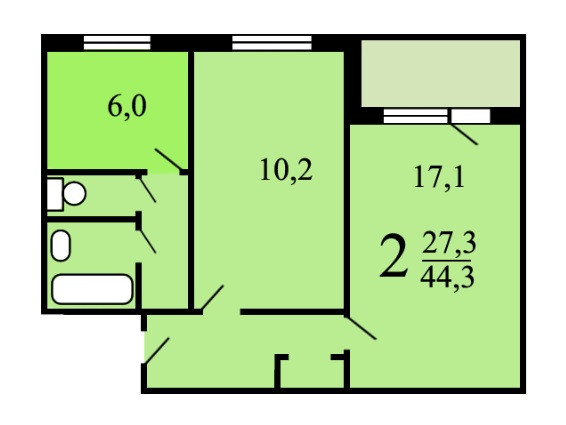 Жилая площадь 27.3 м2