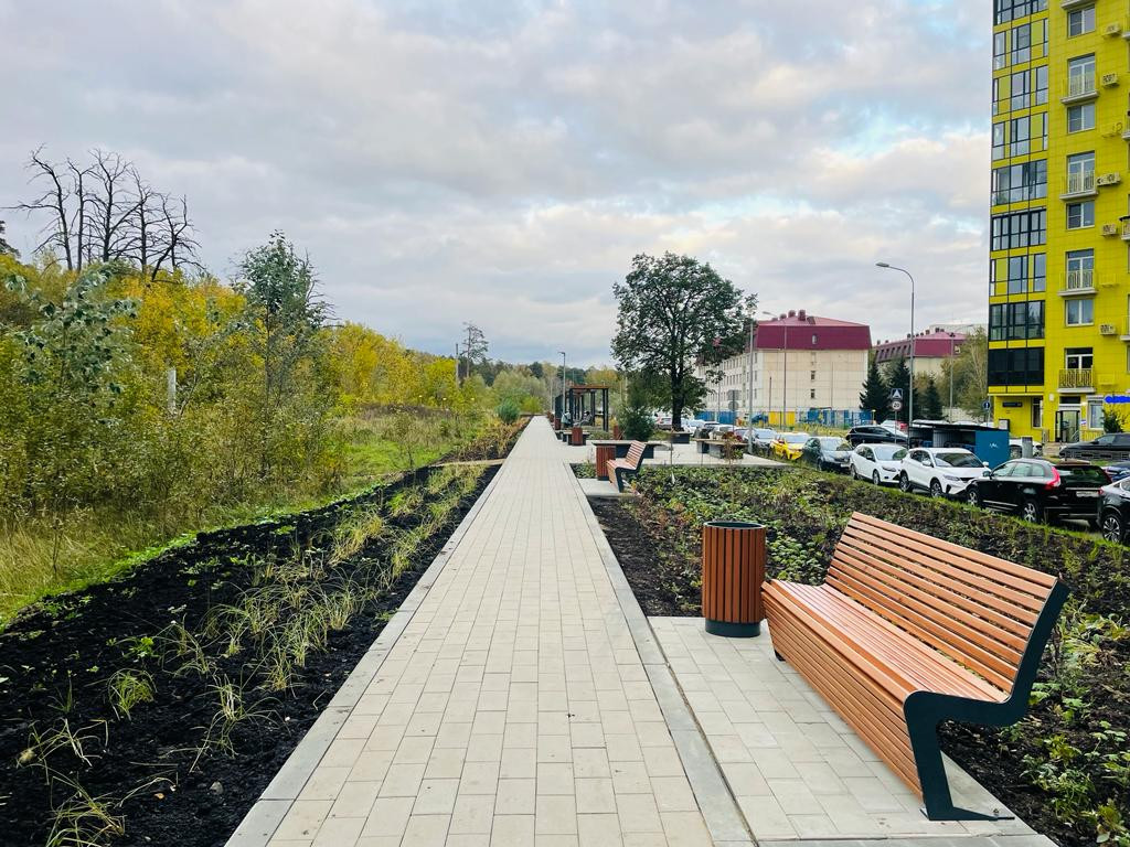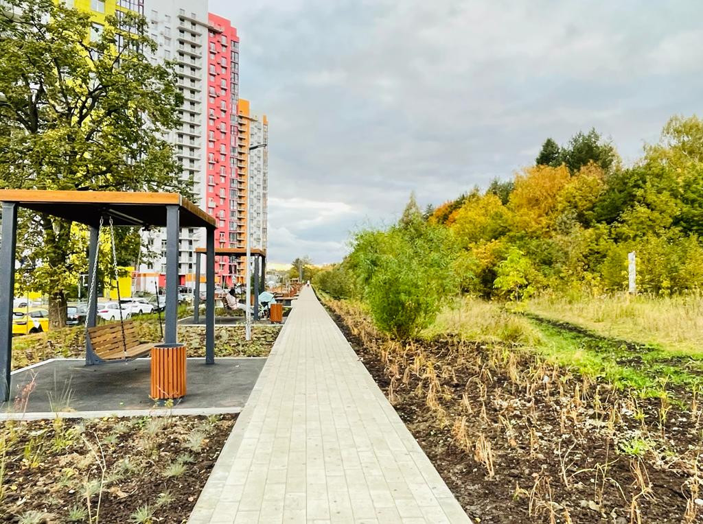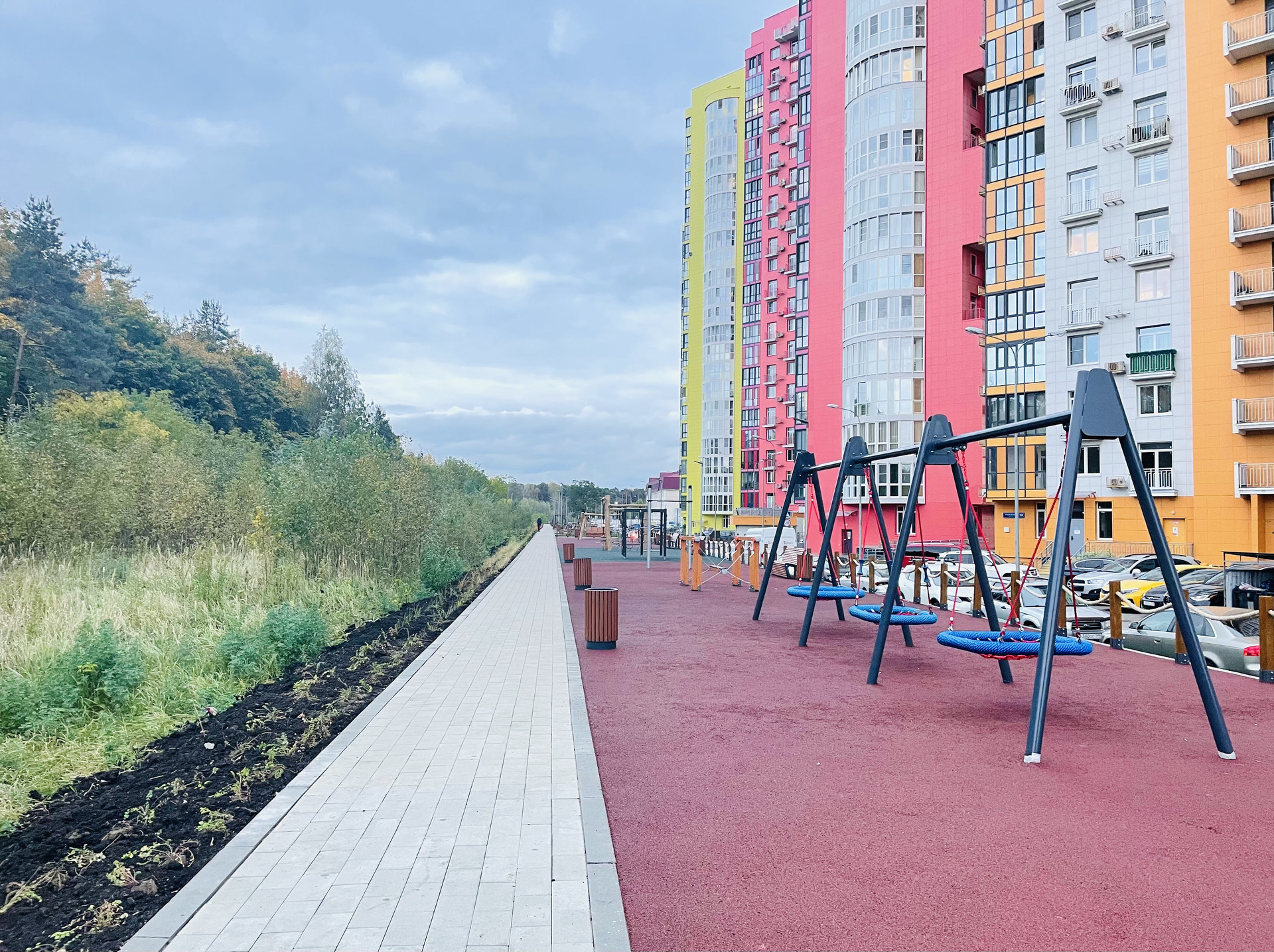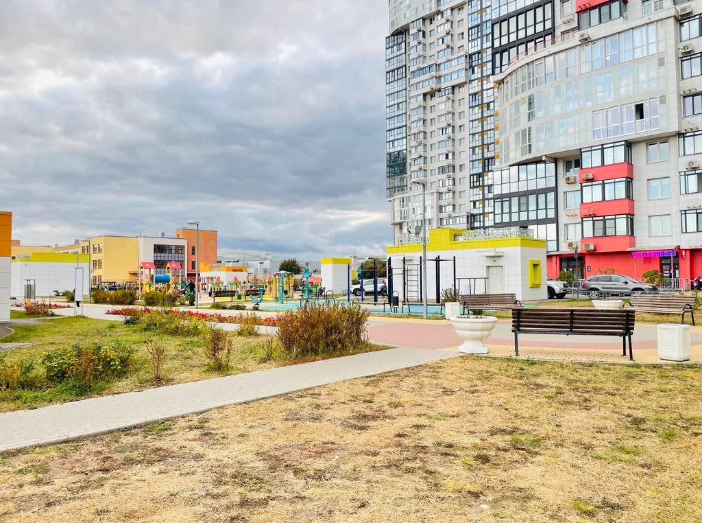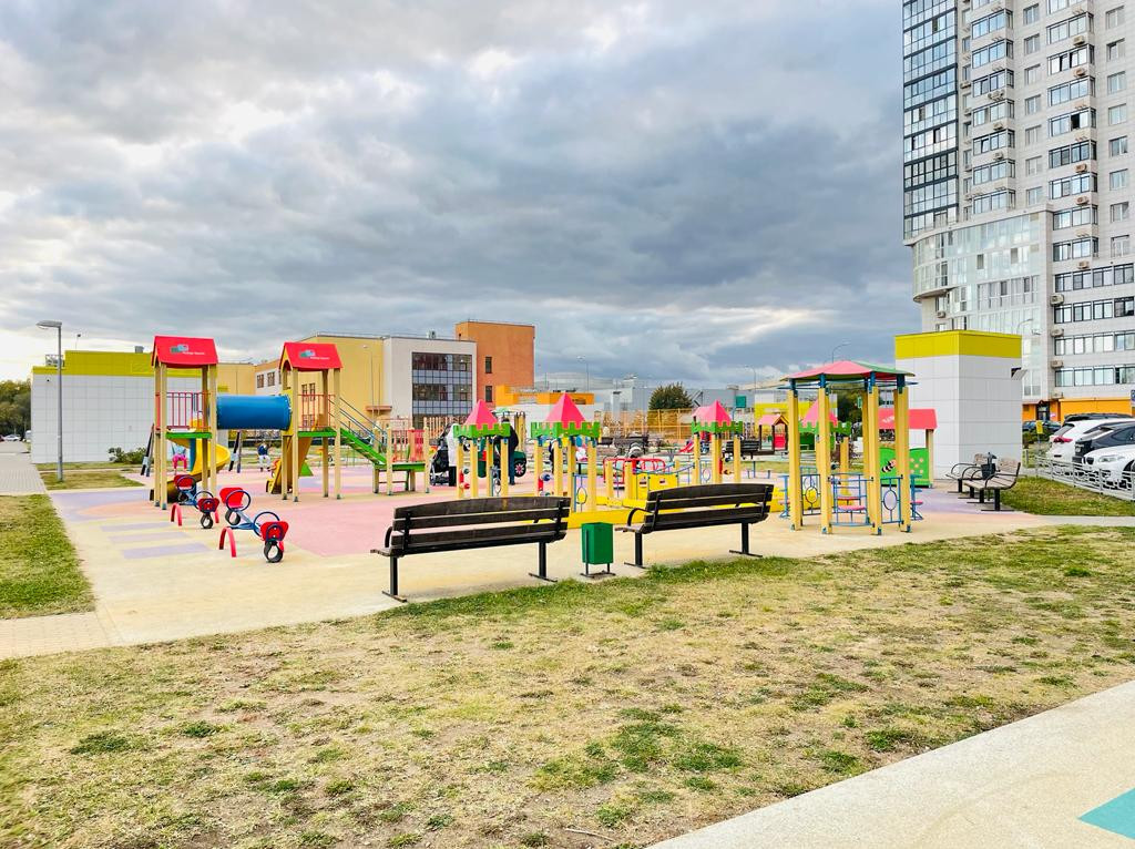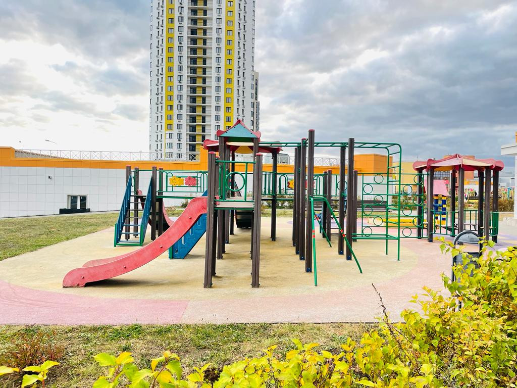 На территории комплекса детские и спортивные площадки, сквер вдоль лесопарка с зонами отдыха, игровыми зонами, качелями. Школа, магазины, аптеки.