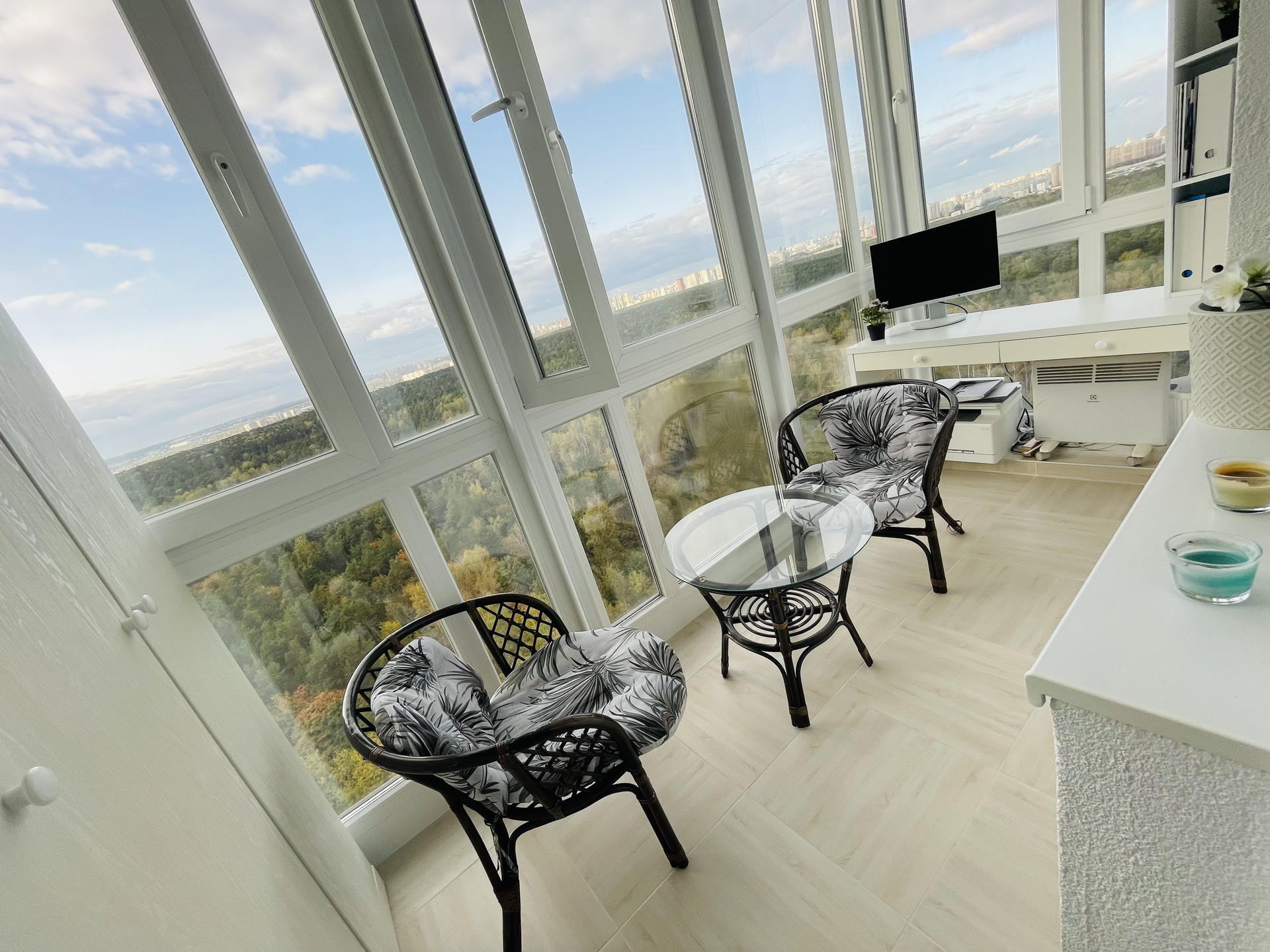 Высокий этаж, великолепный вид из всех окон на лесопарк. Красивые закаты.