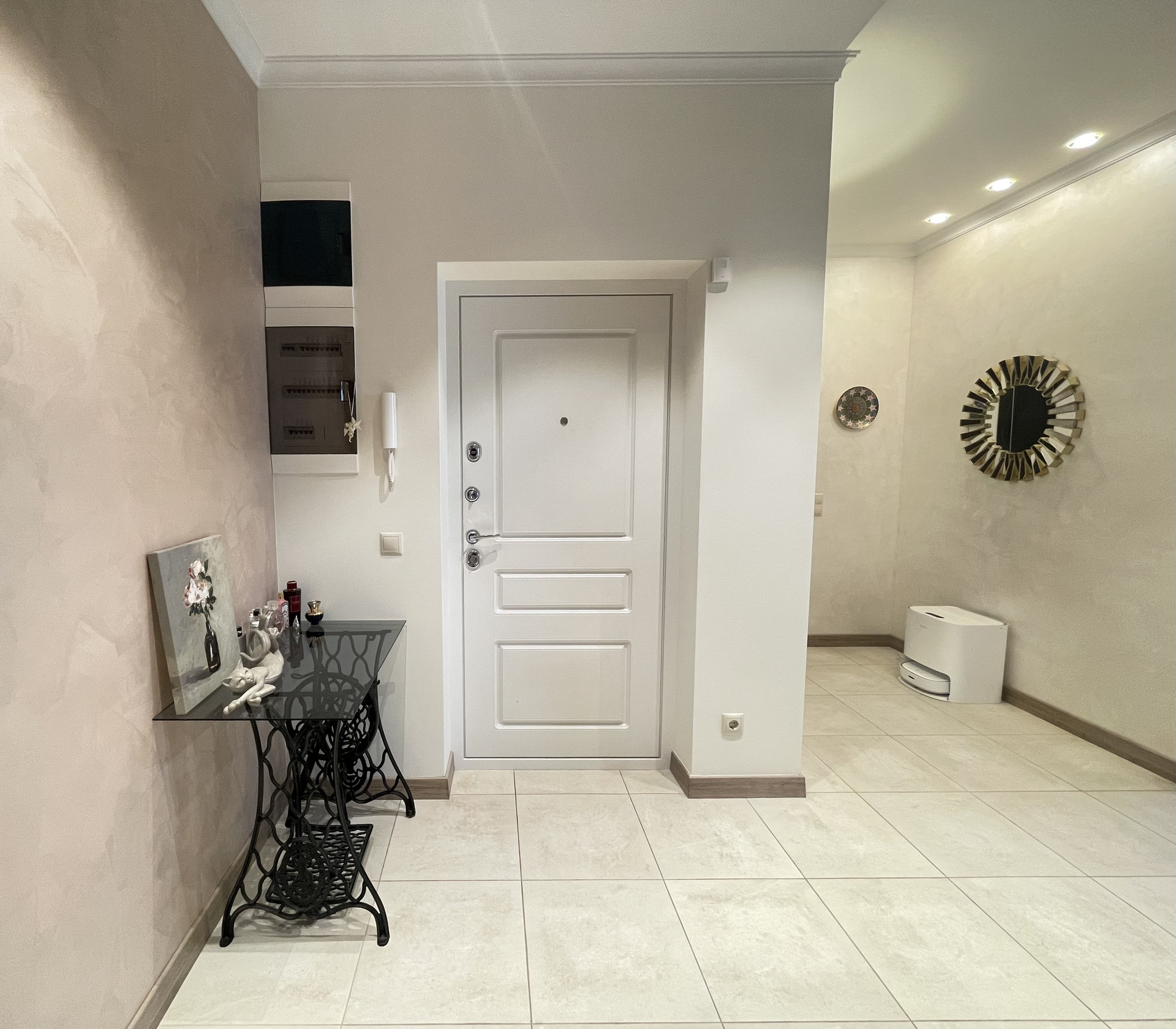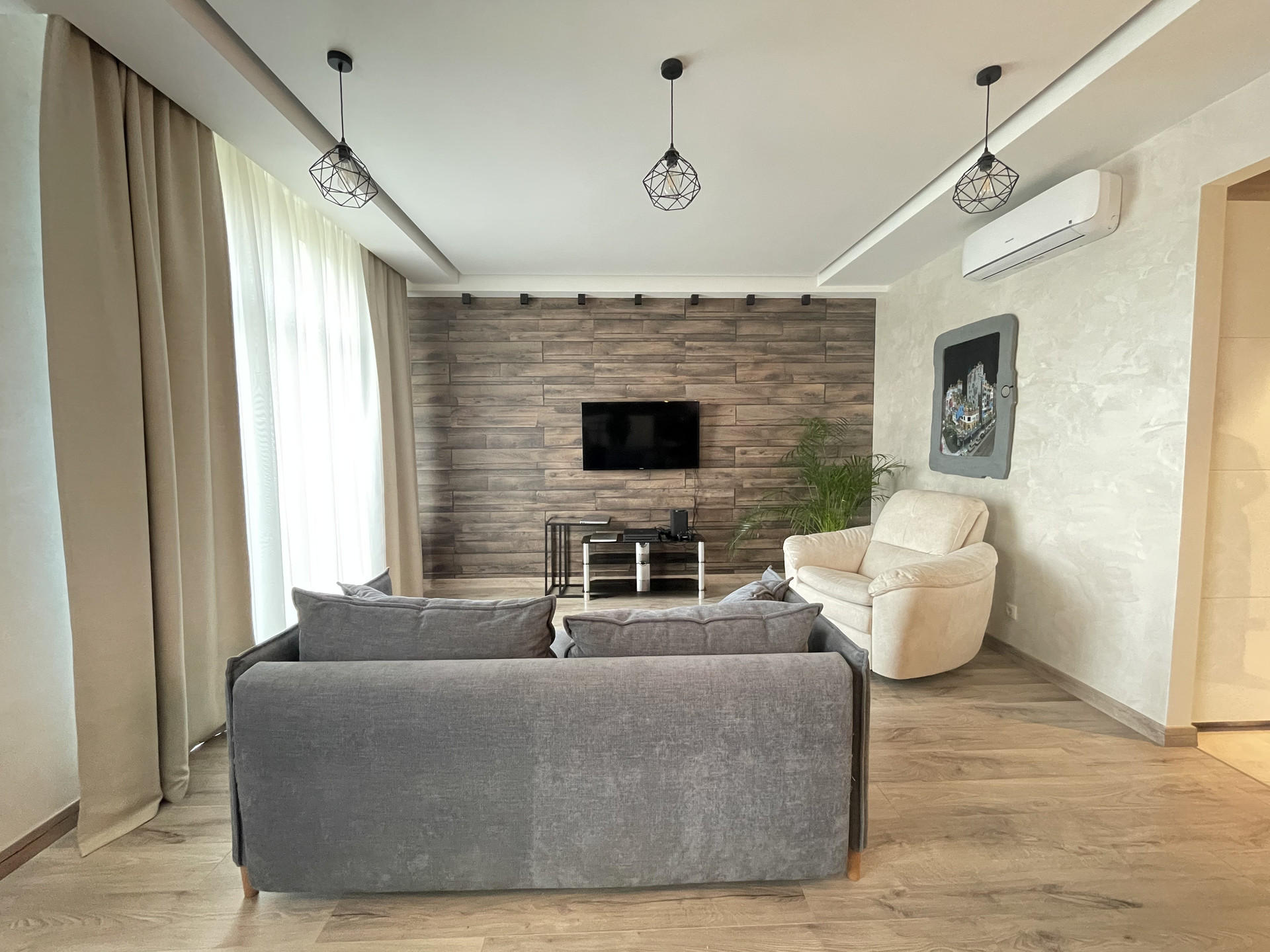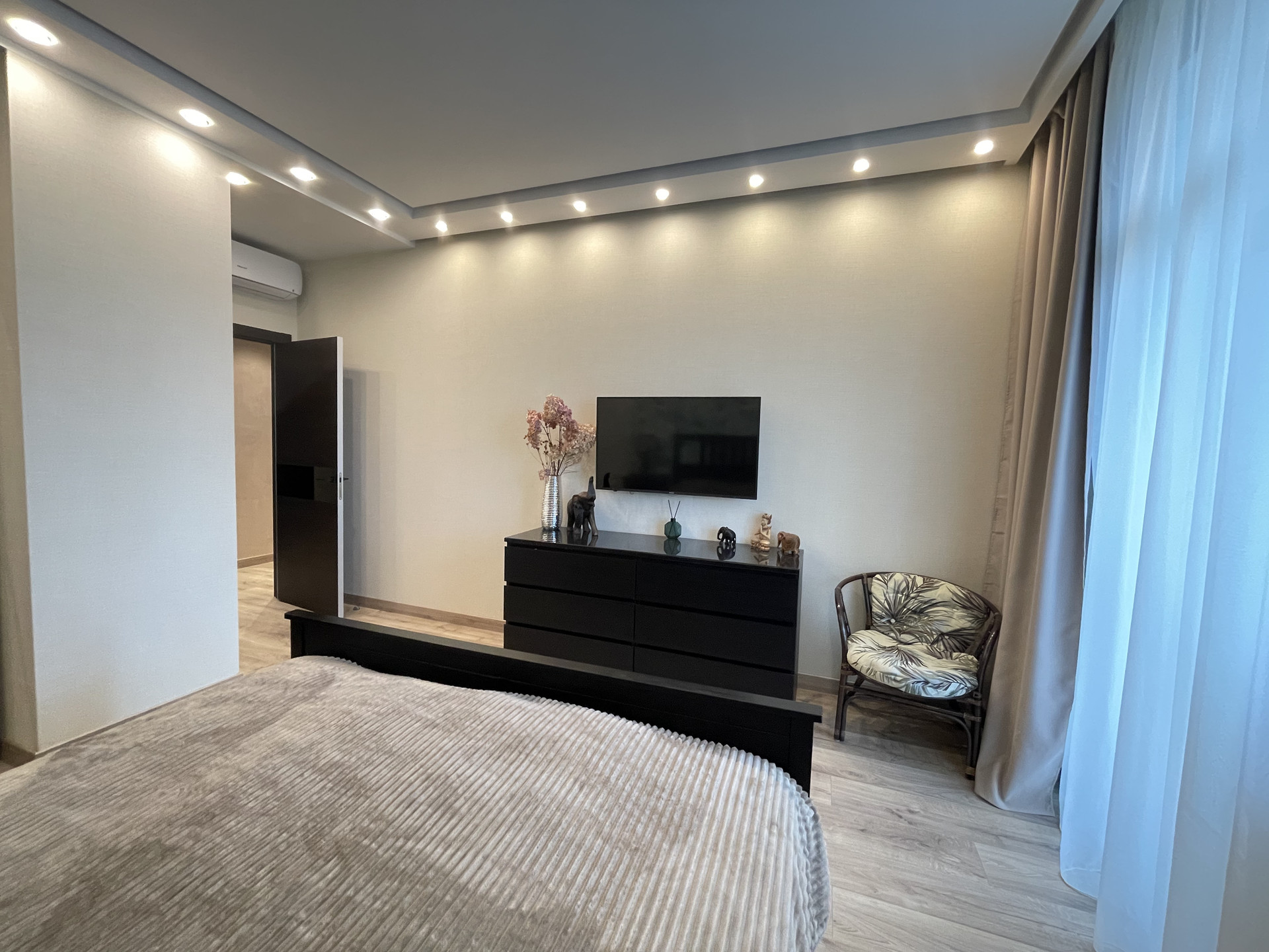 На лоджии и в сан узлах теплый пол. В спальне и в гостиной кондиционеры.