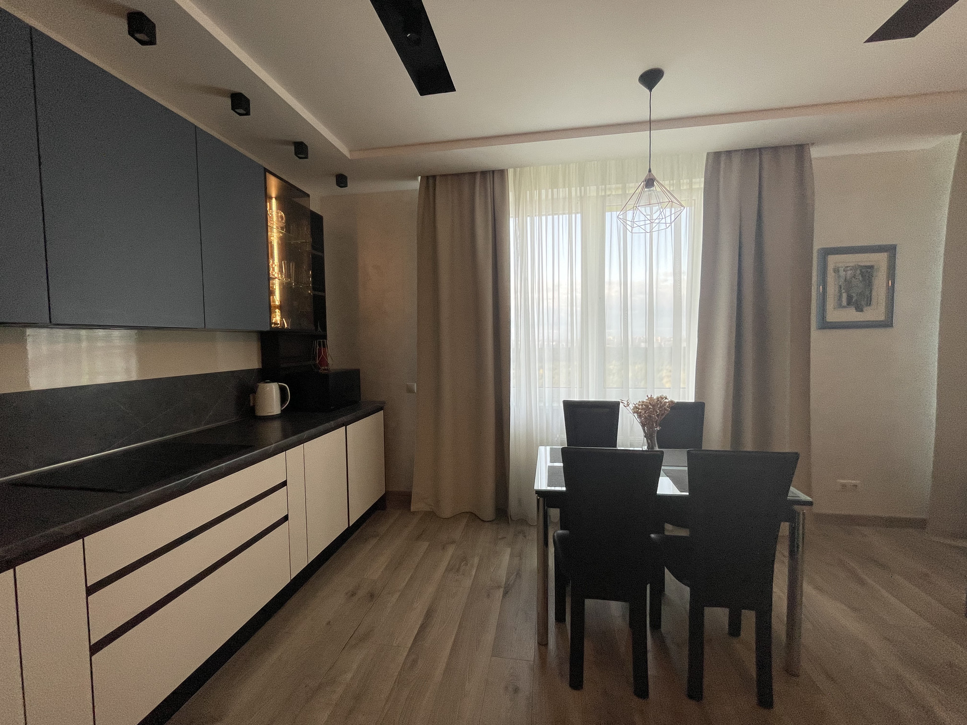 Просторная кухня гостиная с французским балконом, две изолированные спальни, из одной спальни выход на утепленную лоджию, где вы сможете отдыхать и наслаждаться потрясающим видом. Два сан узла, большая гардеробная.