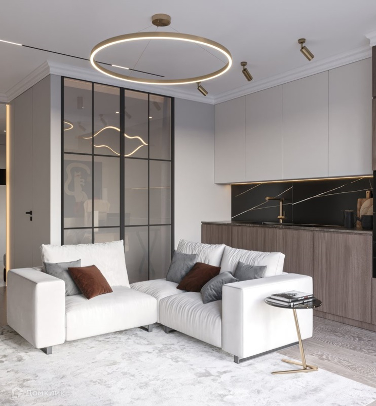 7008 Новая квартира с дизайнерским премиальным ремонтом. Панорамные окна, вид на Шуховскую башню. Планировка: спальня, просторная кухня гостиная, гардеробная комната, большой санузел.