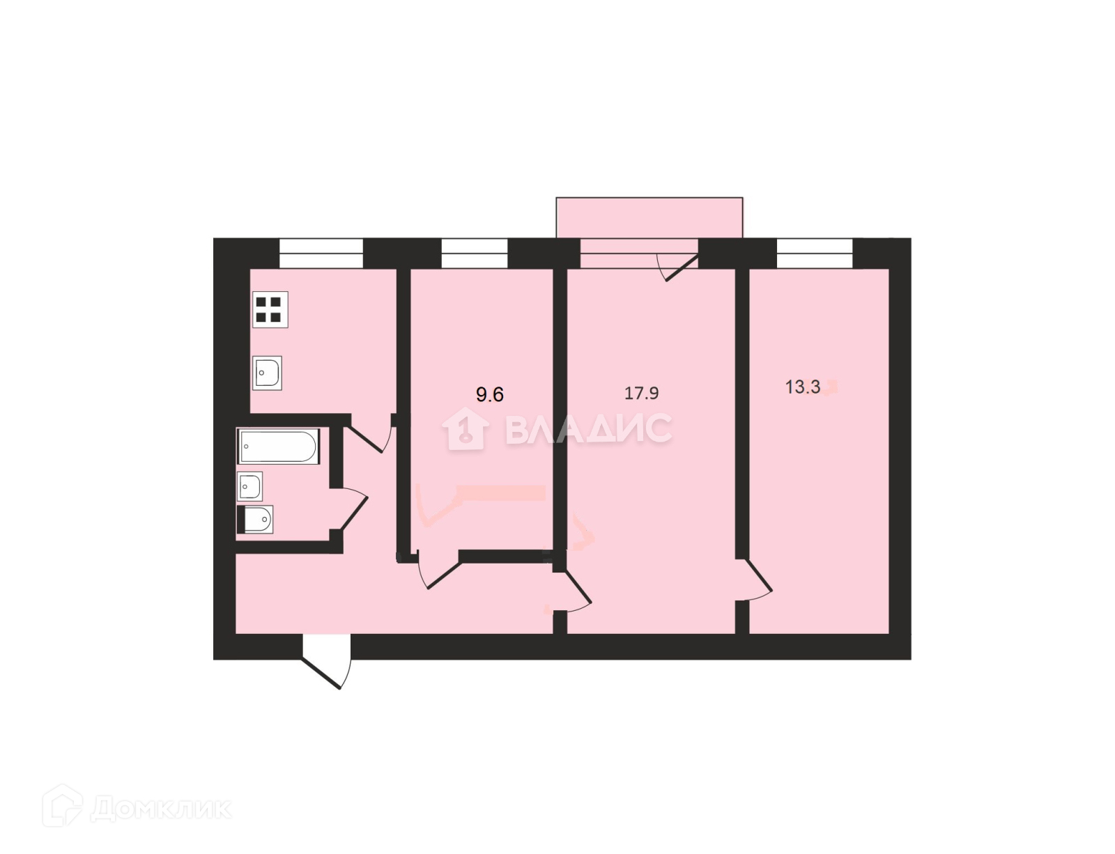Общая площадь 55.3 м2