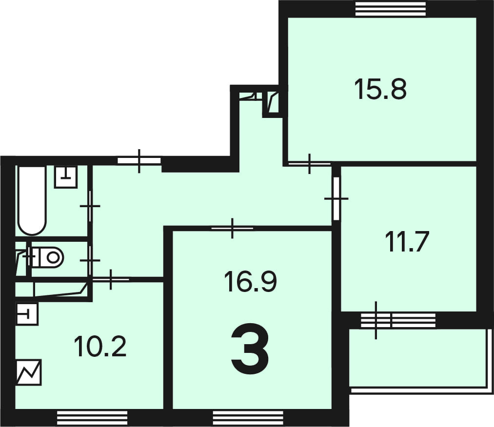 Количество комнат 3