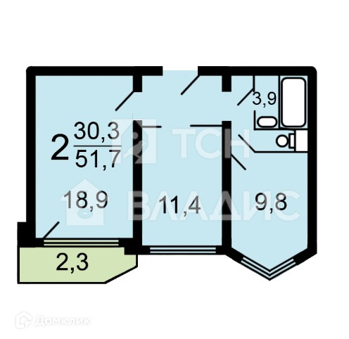 Общая площадь 51.7 м2