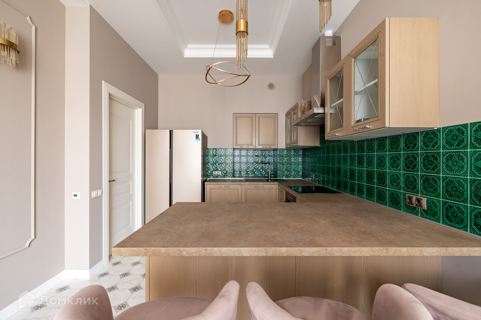 В отделке использованы качественные экологичные материалы. Сделана шумоизоляция, приточно-вытяжная вентиляция, подогрев пола. Квартира укомплектована дорогой мебелью и техникой. Паркетный пол, шикарная итальянская кухня Aran Cucine, немецкая техника Zigmund&Shtain, высокие двери из массива с красивыми карнизами, дорогая сантехника. Продумана каждая деталь: идеально подобранная цветовая гамма мебели, тканей, фурнитуры и отделки стен. Большое количество стильных светильников итальянской фирмы Odeon Light создает комфортное освещение для работы и отдыха в любое время.