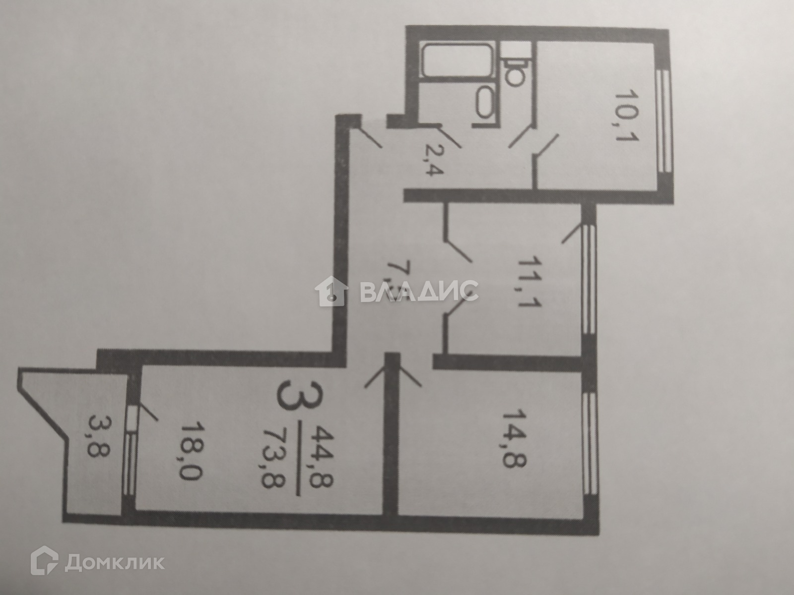 Общая площадь 74.4 м2