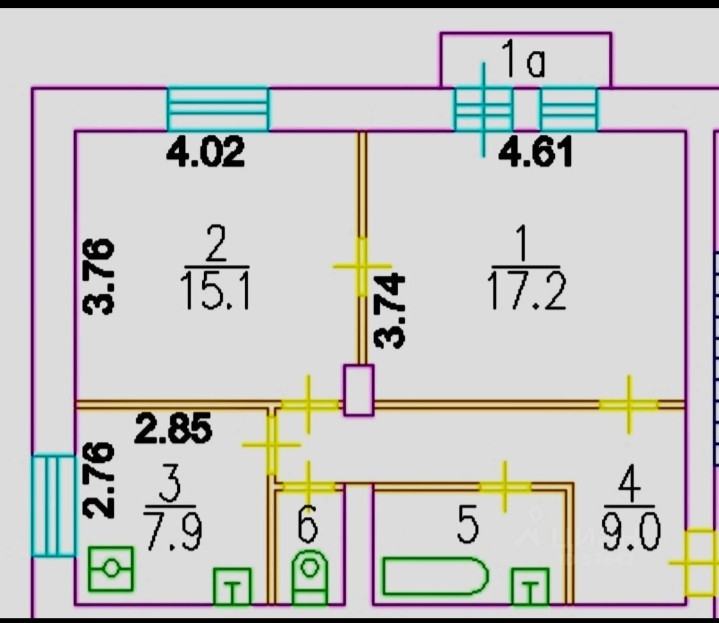Общая площадь 54.3 м2