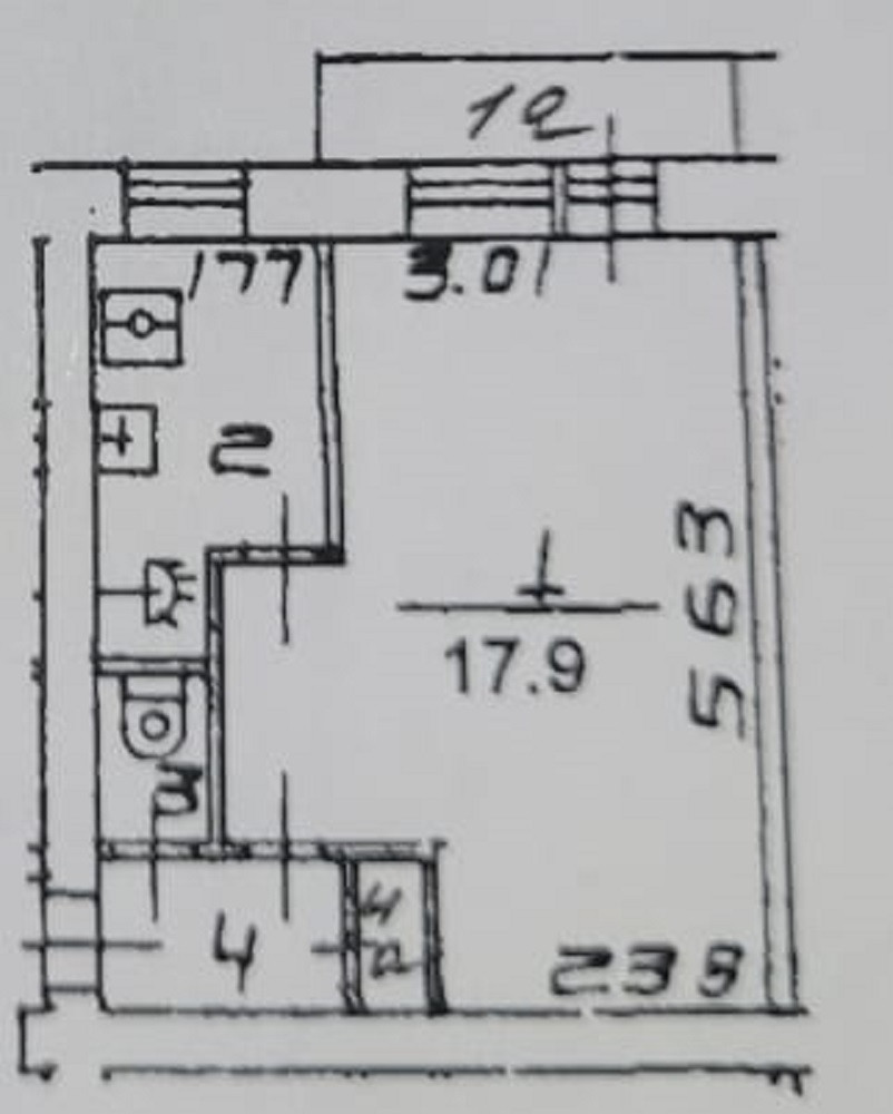Жилая площадь 17.9 м2