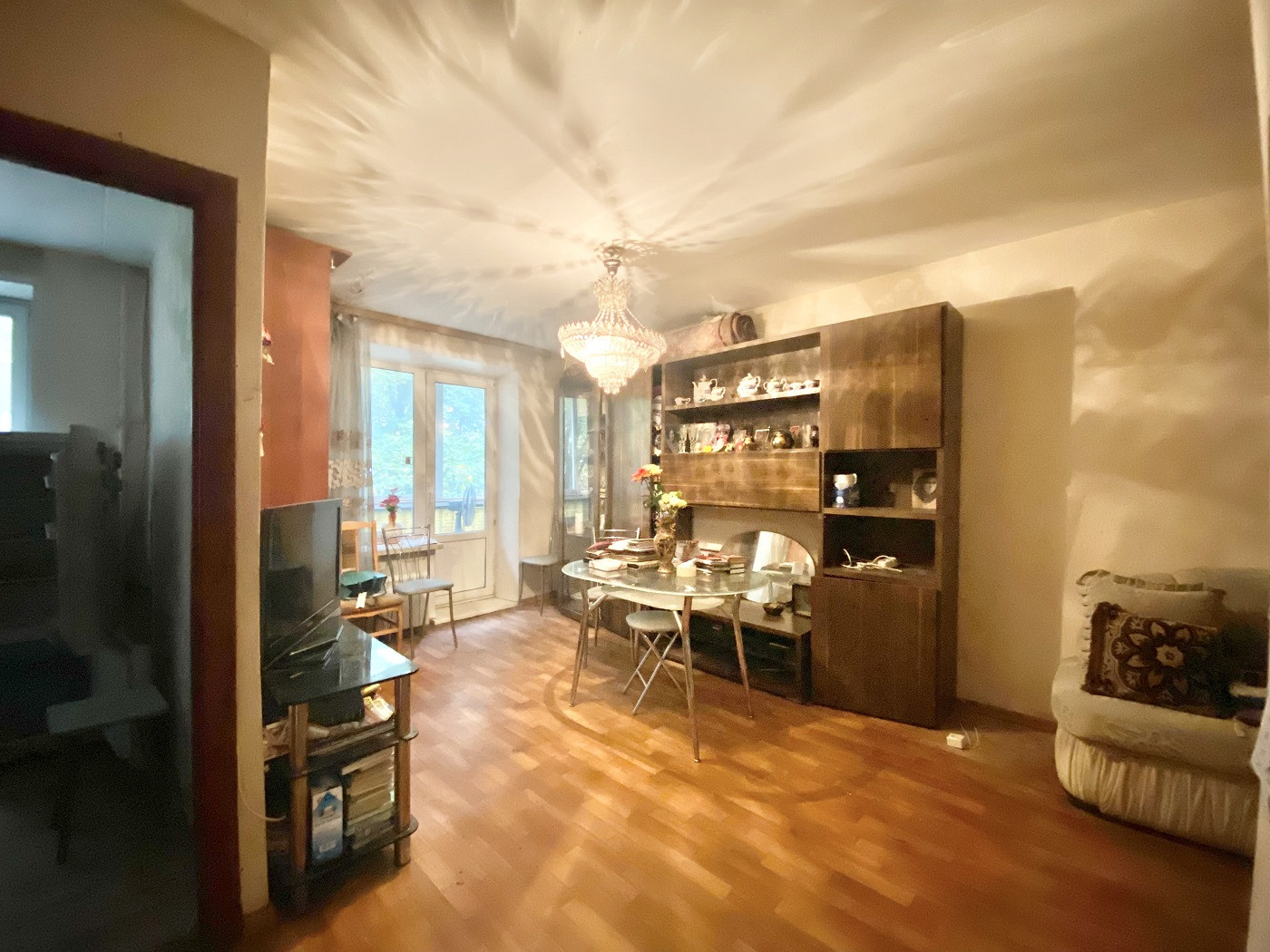 В квартире имеется застекленный балкон (выход из комнаты), изолированная кухня с душевой, в квартире газ (газовой колонки нет, горячая вода центральная). Окна выходят в тихий сквер за домом. В квартире можно сделать интересную планировку.