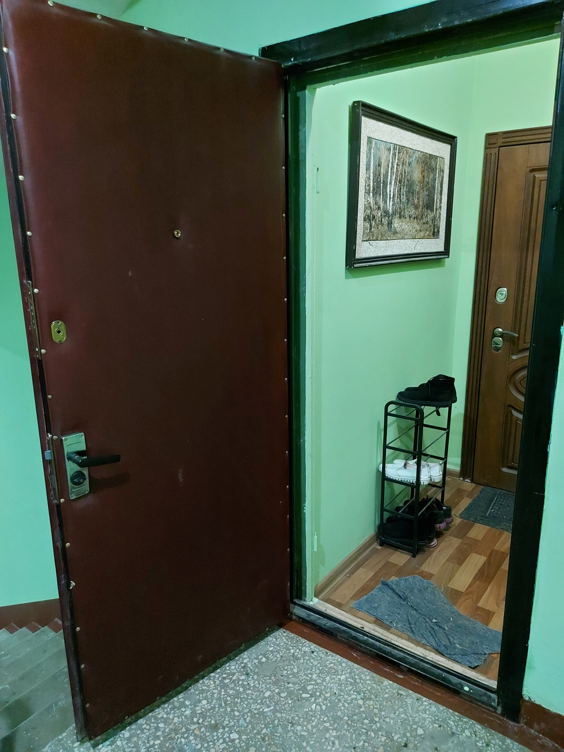 Все окна в тихий двор. Дополнительная дверь на две квартиры с ухоженным тамбуром.Прекрасные соседи.