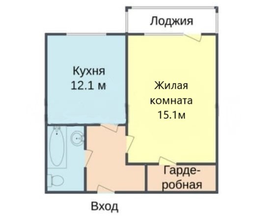Жилая площадь 15.1 м2