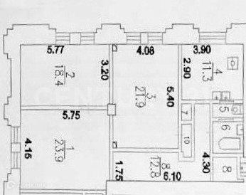 Шикарная планировка: кухня/гостиная -11.3м2, гостиная- 23.9м2, две спальни 21.9м2 и 18.4м2.