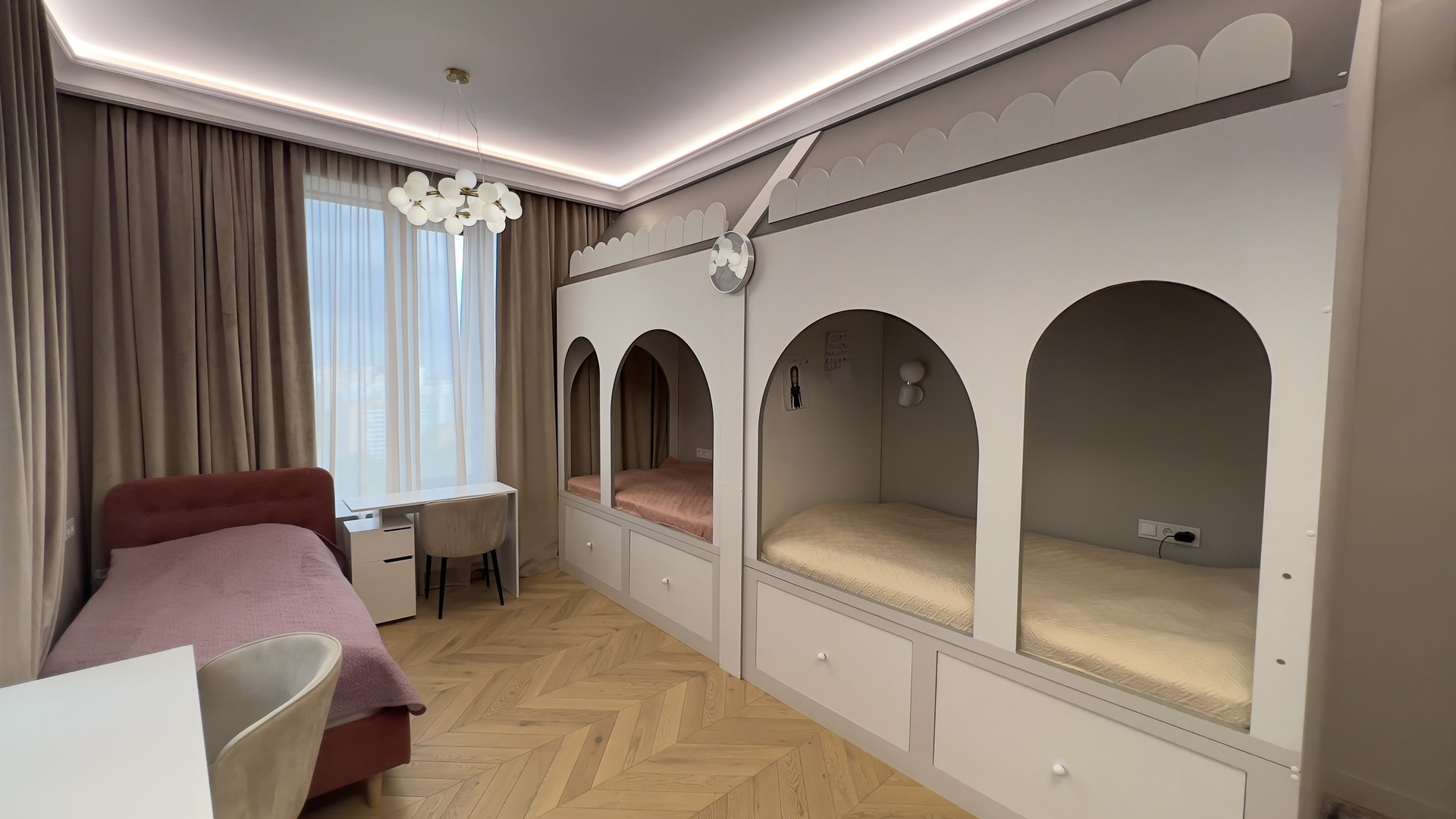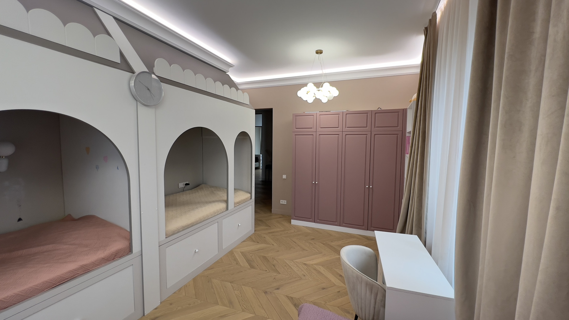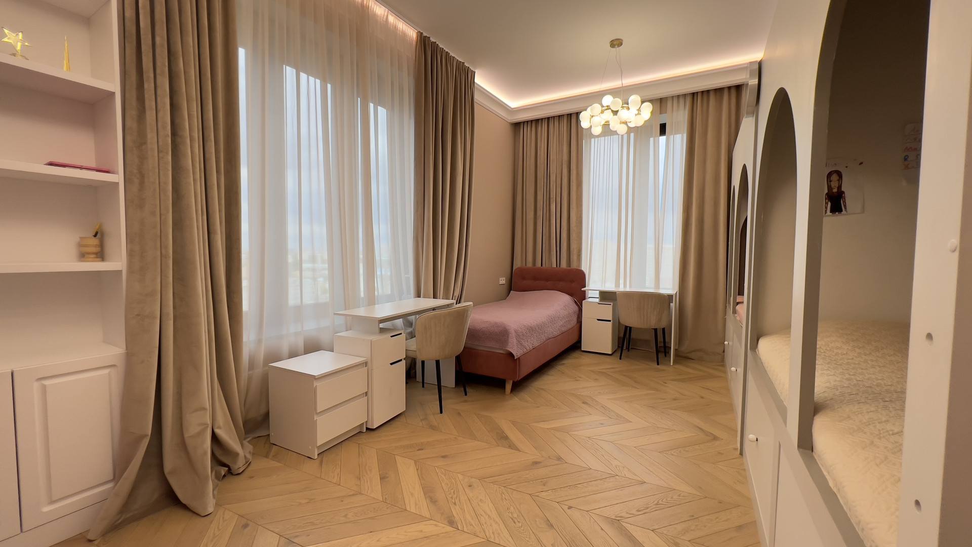 - 3 изолированные спальни (18,4 кв.м, 21,1 кв.м, 23,4 кв.м) ,