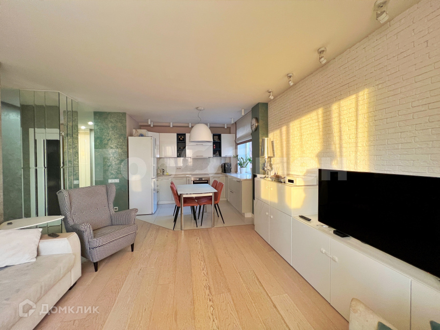 О квартире: кухня-гостиная 30 кв.м., спальня 12 кв.м., гардеробная 6 кв.м., санузел совмещенный с встроенной музыкальной системой 7 кв.м., холл 12 кв.м., балкон 4 кв.м.