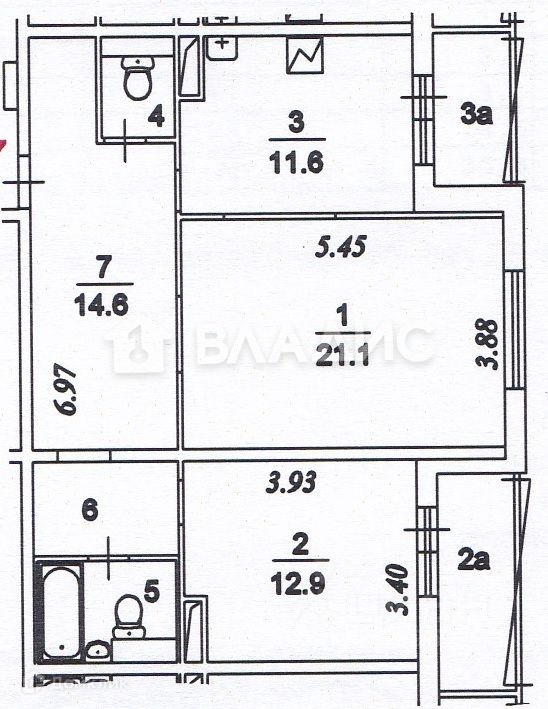 Общая площадь 69.3 м2