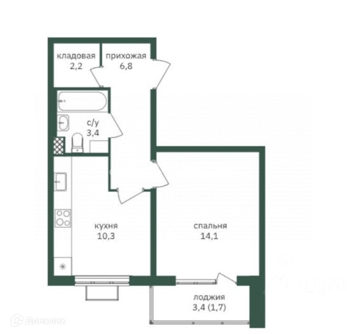 Жилая площадь 13.6 м2