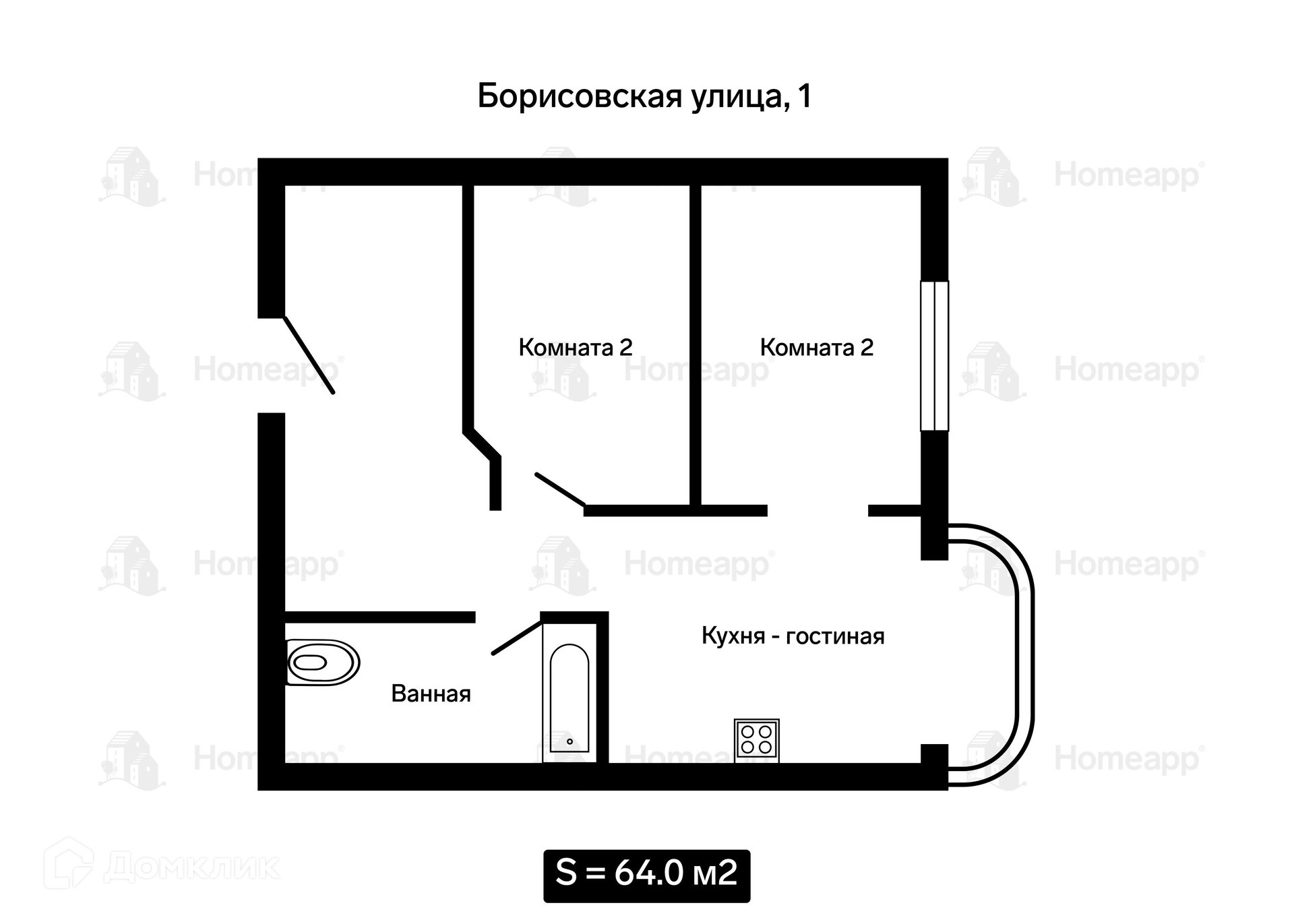 Общая площадь 60.1 м2