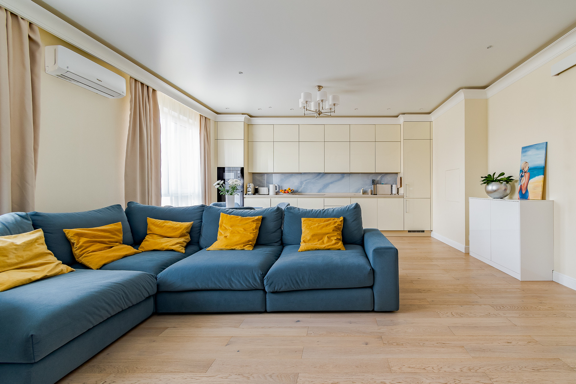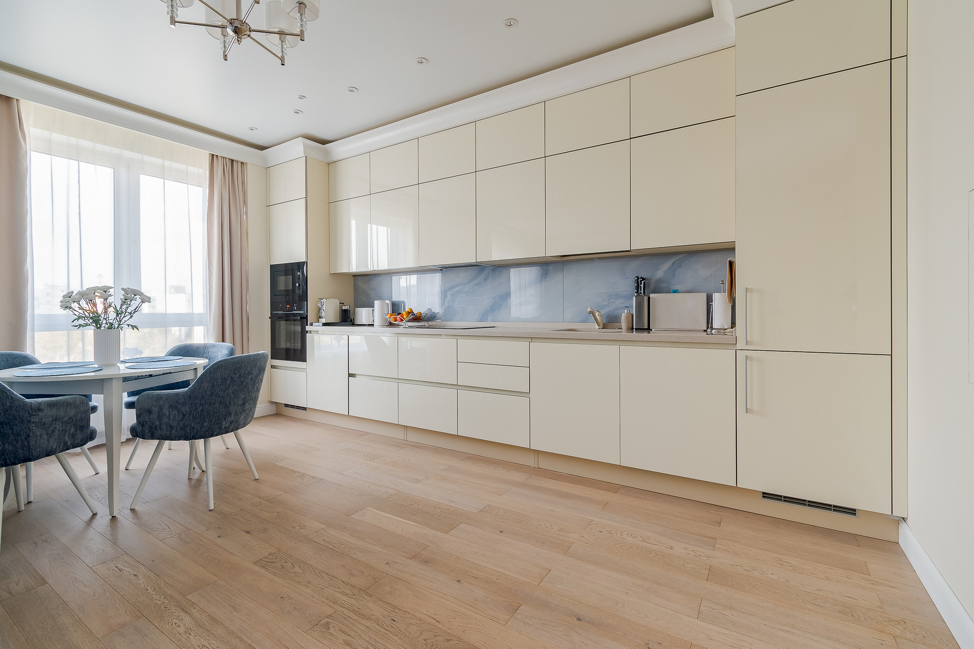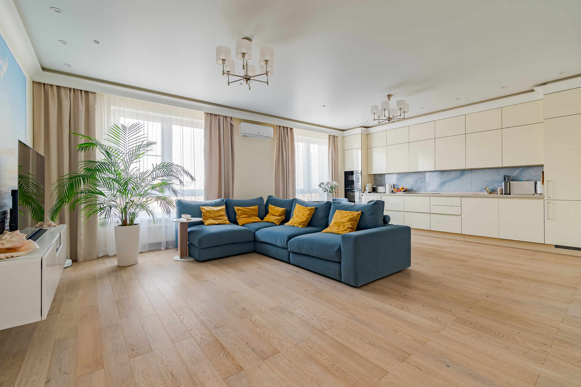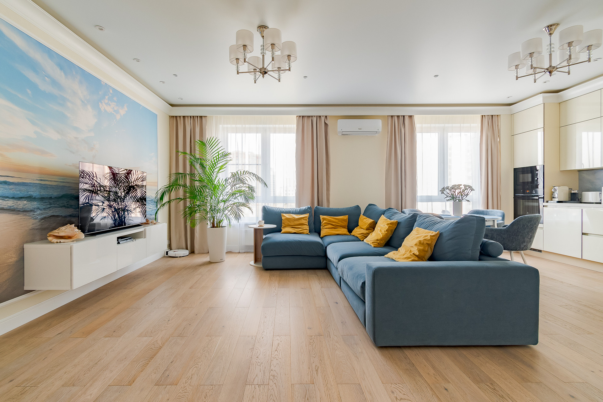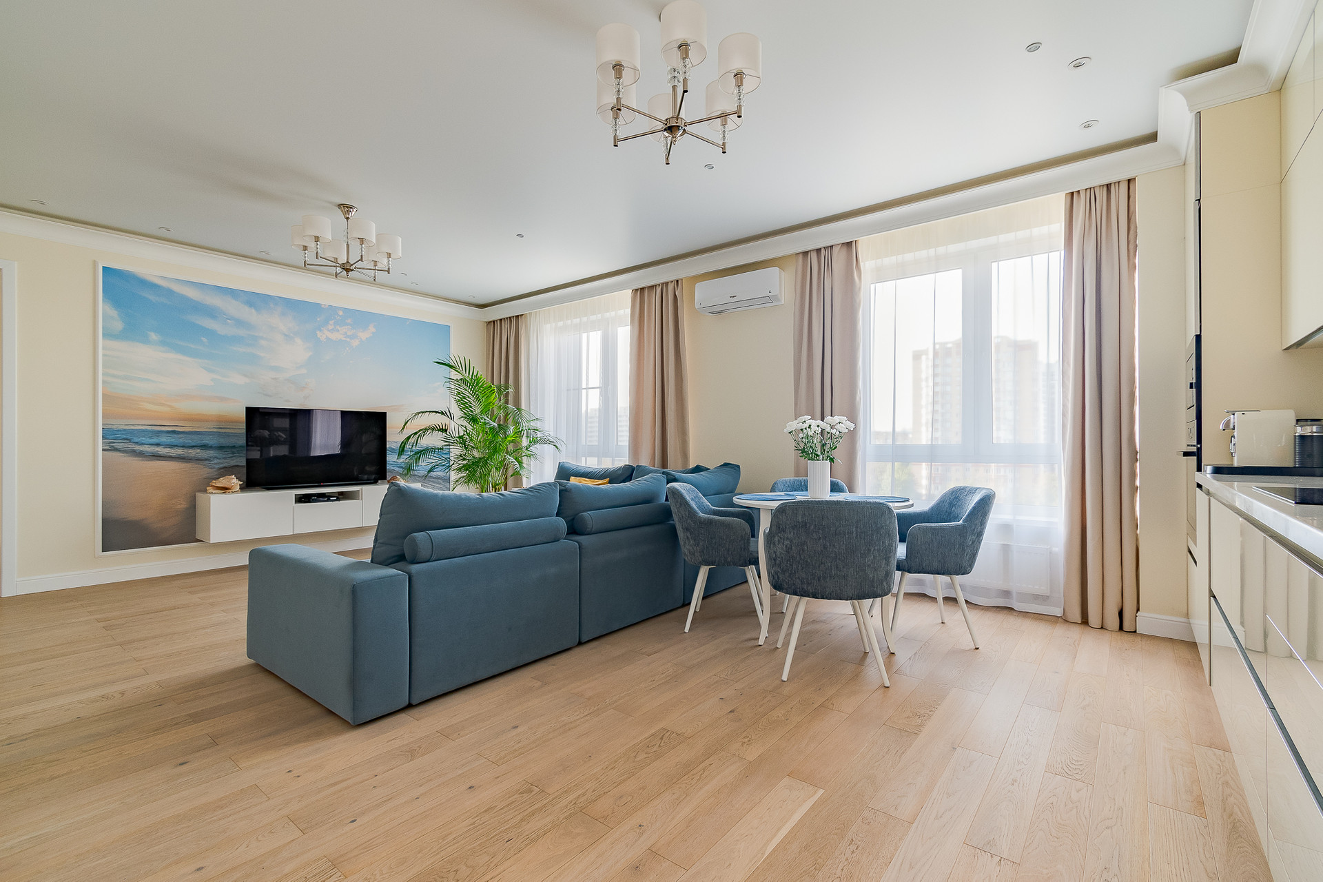 Ремонт произведен по дизайн-проекту с с использованием высококачественных материалов. В квартире оборудована система приточно-вытяжной вентиляции, реализована система "умный дом", аменены все окна на стеклопакеты высокого класса шумоизоляции. Квартира полностью меблирована, кухня оборудованна всей необходимой бытовой техникой. Квартира готова к проживанию. Идеальное состояние.