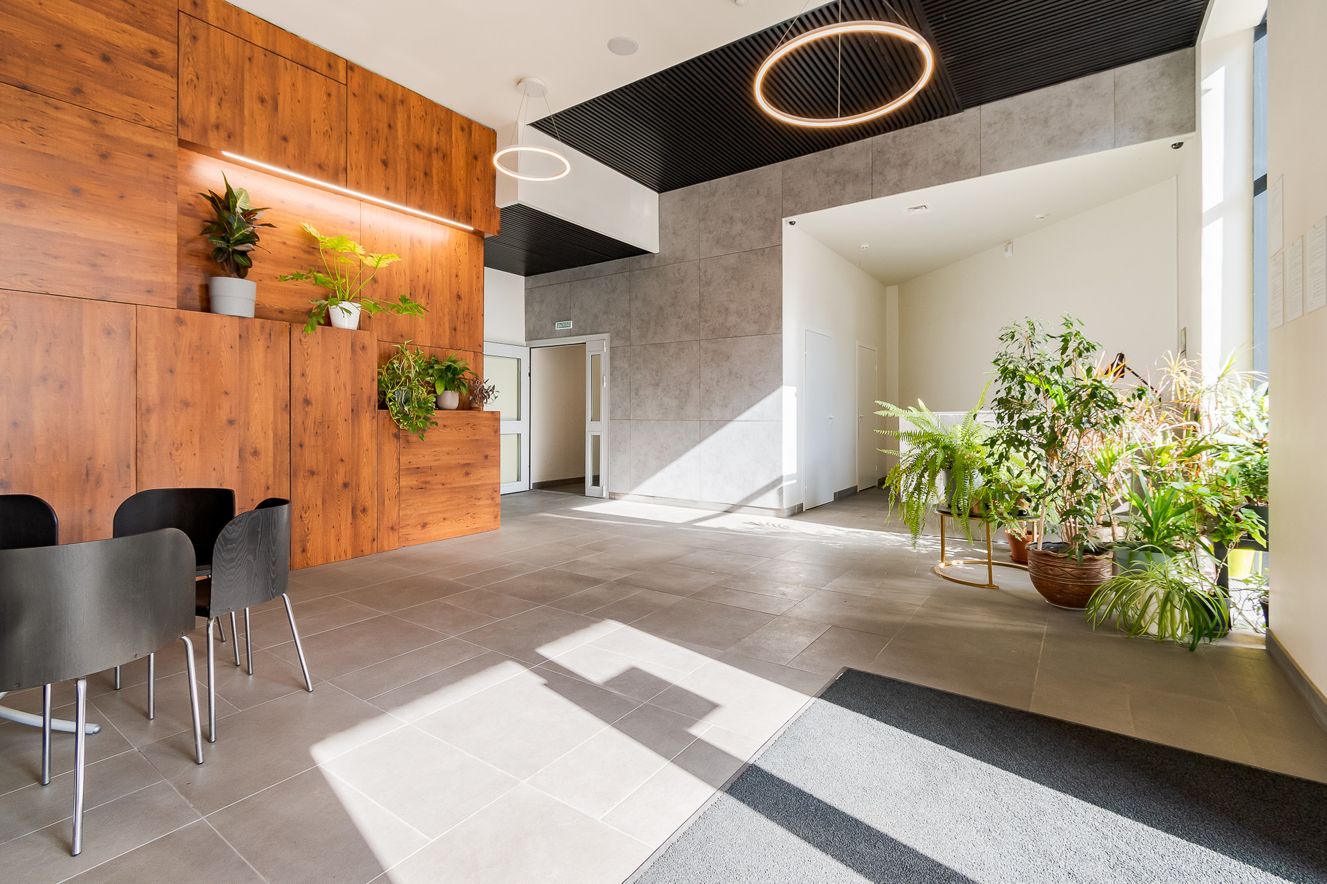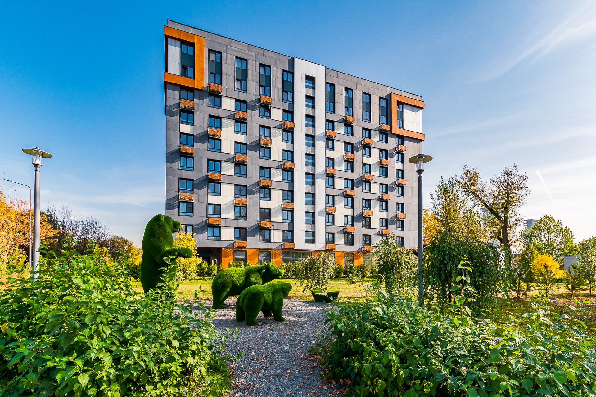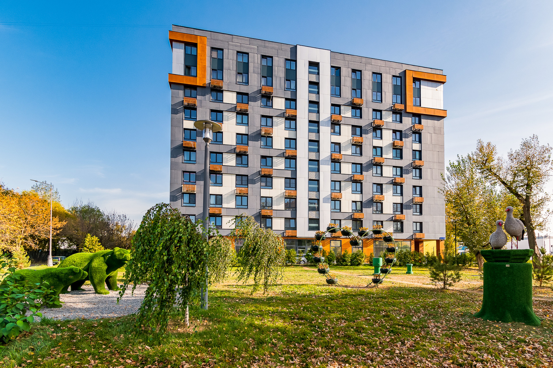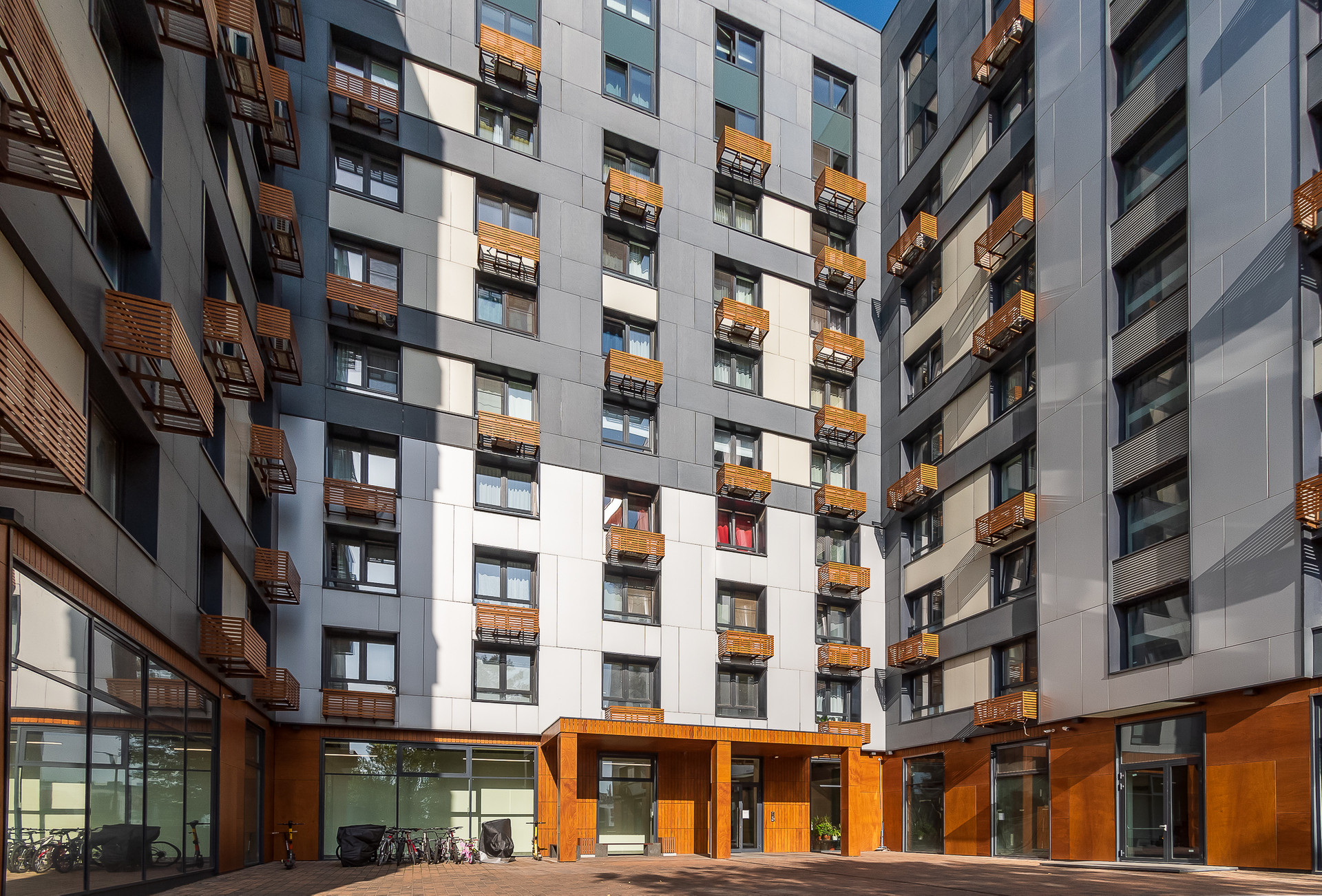 В апарт-комплексе есть подземный паркинг и закрытый наземный паркинг. В лобио размещается пост консьержа. Охраняемая территория.