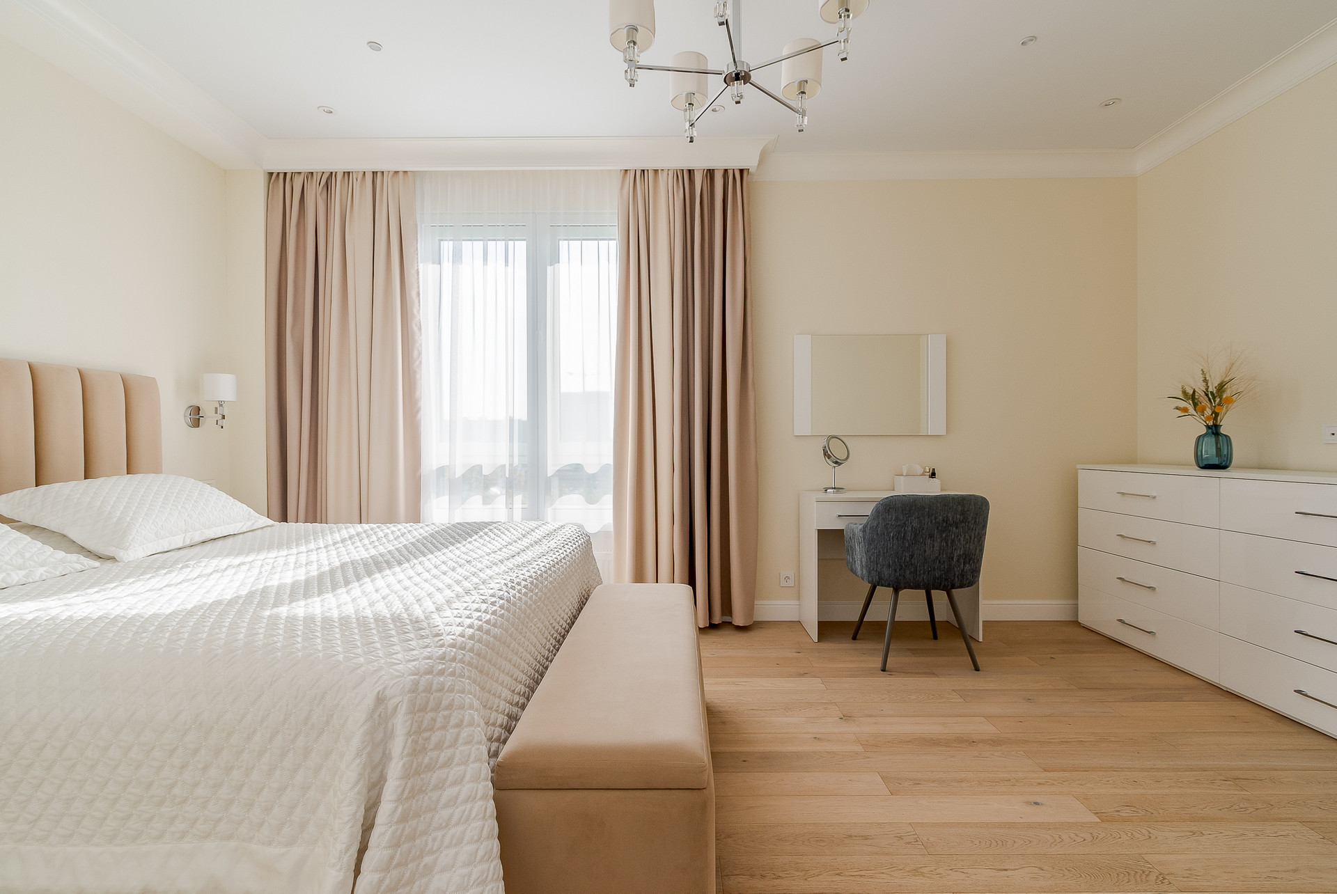 Планировка включает просторную кухню-гостиную более 40 кв.м., мастер-спальню со своей гардеробной и санузлом, большую детскую комнату, изолированную комнату свободного назначения, гостевой санузел, изолированное пространство прихожей.