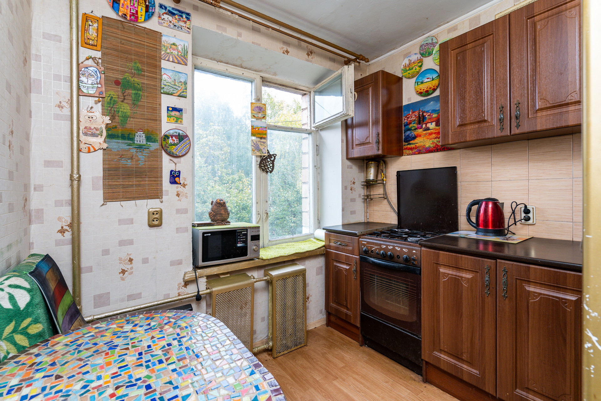 Квартира с косметическим ремонтом имеет просторную комнату с двумя окнами на разные стороны и выходом на балкон, уютную кухню с централизованным газоснабжением, совмещенный санузел с душевой кабиной и прихожую.
