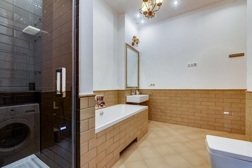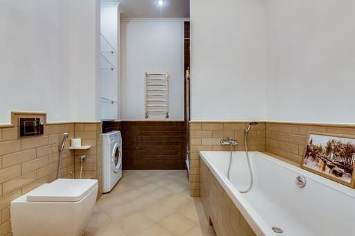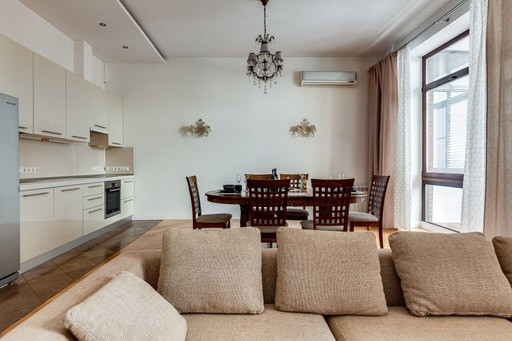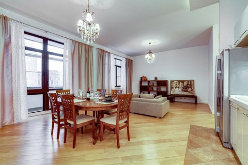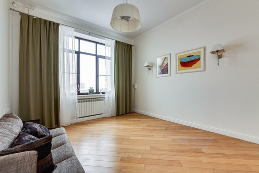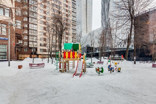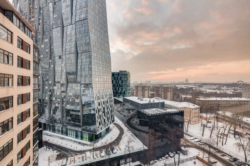 Большая кухня-гостиная с лоджией, мастер-спальня с гардеробной и большим санузлом, детская с примыкающим санузлом. Вид из окна во двор и на Москва-сити.