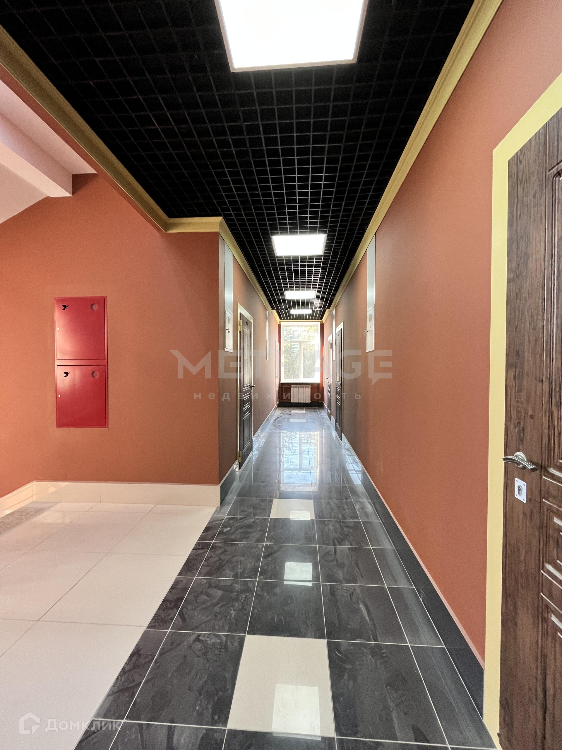В самом здании произведен капитальный ремонт с заменой инженерных сетей, всех коммуникаций, крыши. Выполнен дизайнерский ремонт подъезда, коридоров и входной группы с применением качественных материалов в оттенке терракот. Два подъезда со сквозным проходом. Всего 5 этажей, 165 апартаментов. Раньше в этом здании была гостиница, потом располагался банк.
